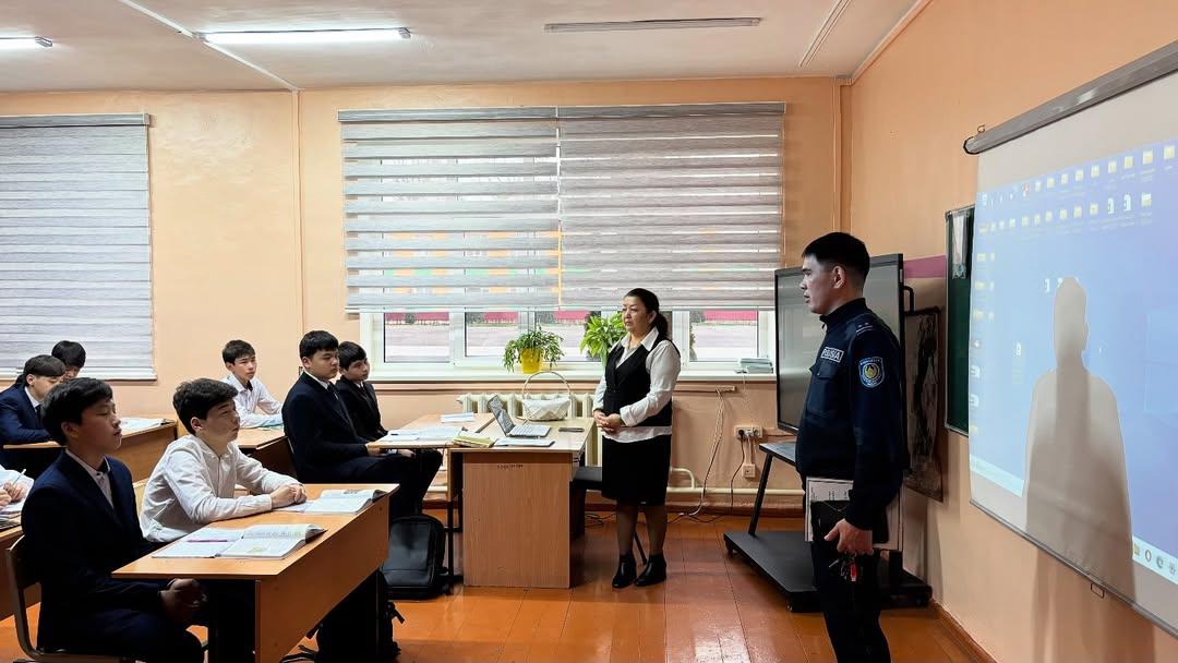 2025 жылдың 08 желтоқсанында Наурызбай ауданы Полиция басқармасының Жергілікті полиция қызметі басқармасының ювеналдық полиция бөлімшесінің учаскелік полиция инспекторы, полиция лейтенанты Аденов Айдос Мәлікұлының қатысуымен 5–11 сынып оқушыларына ар