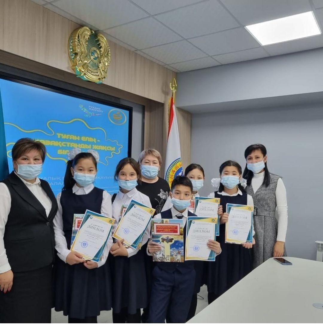 "Рухани жаңғыру" бағдарламасы аясында "Туған елің - Қазақстанды жақсы білесің бе?" тақырыбында республикалық балалар оқулары байқауының қалалық кезеңіне мектебіміздің 5 оқушыдан құралған "Қыран" командасы қатысып, 2- орынды иеленді. Команда құрамында өздерінің білімді, алғырлықтарын көрсеткен 6-сынып оқушылары: Кайнбай Еркежан,Өмірбай Алдияр, Кахарман Қарақат, 7-сынып оқушылары: Қахарманова Зарина, Балтабекова Аружан болды. Аталған оқушылардың арасында Өмірбай Алдияр Республикалық байқауға жолдама алды. Алдиярға алдағы Республикалық жарыстан жүлделі орын алуына тілектестік білдіреміз.