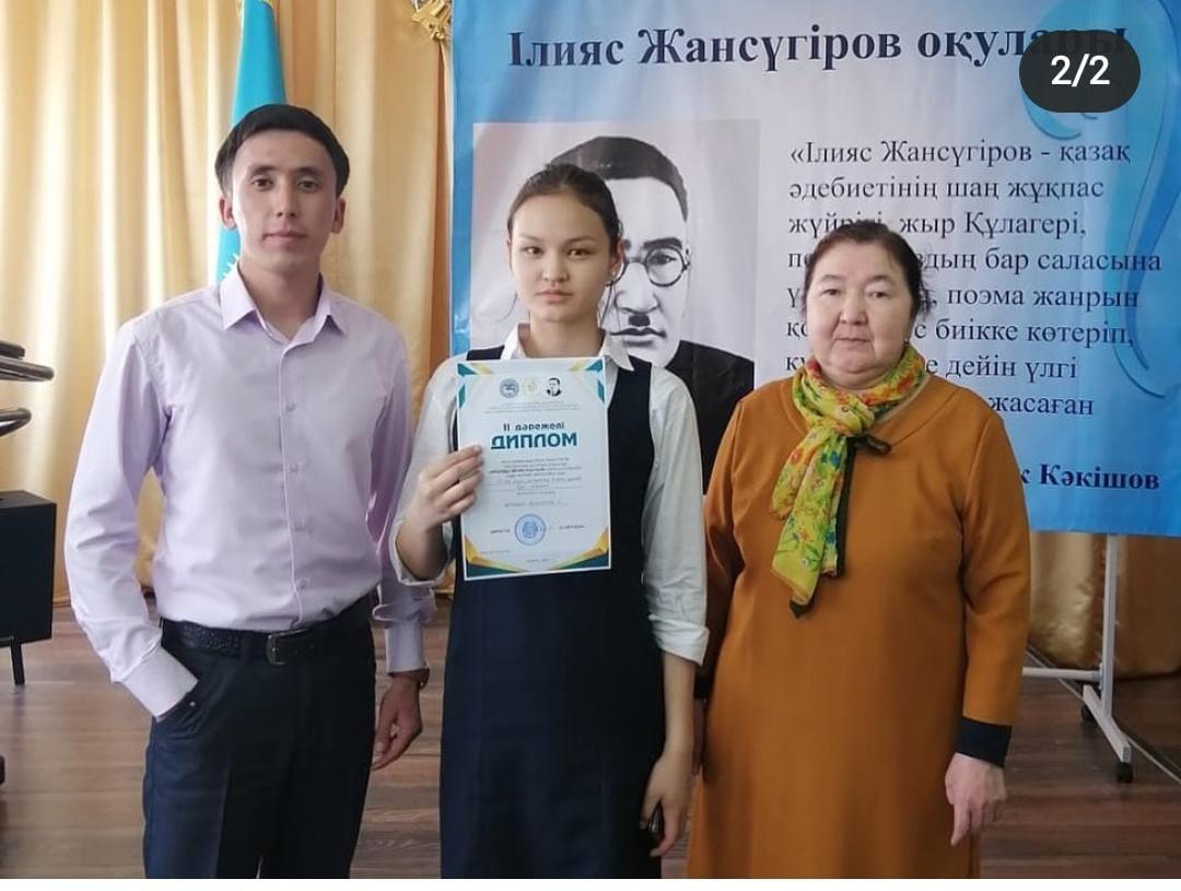 Сәуірдің 15-і күні "Алматы дарыны " дарынды балалар мен талантты жастарды анықтау және қолдау орталығының ұйымдастыруымен қалалық І. Жансүгіровке арналған "Ағынды менің-Ақсуым"бағыты бойынша мүшәйрәдан “#188 мектеп-гимназия” КММ 8 "Е" сынып оқушысы Еділ Аружан Еділқызы жүлделі 2-ші орынды қанжығасына байлап, мерейі үстем болды. Жас ақынға шығармашылық табыс пен шалқар шабыт тілейміз.