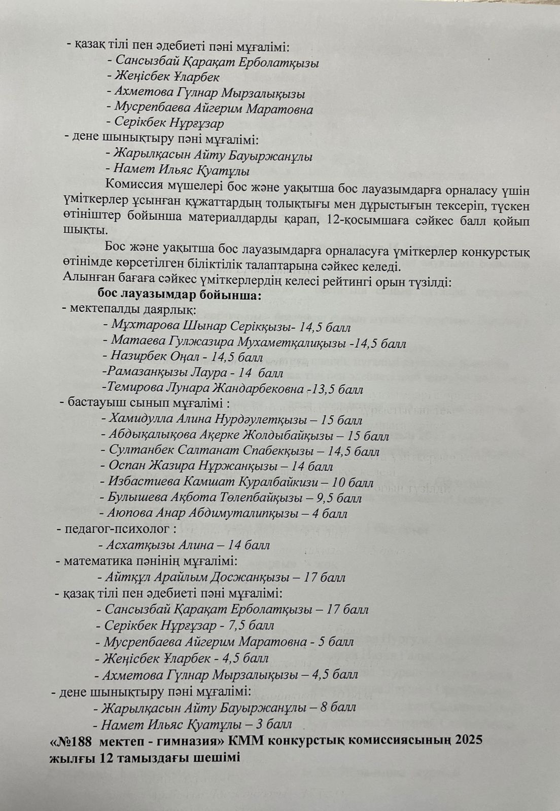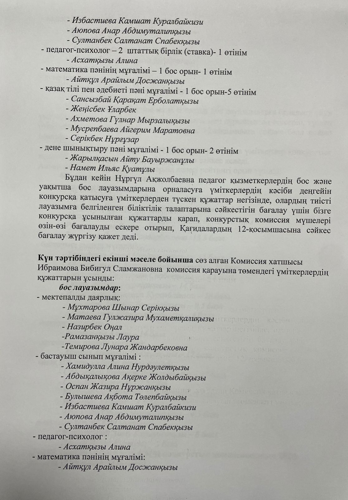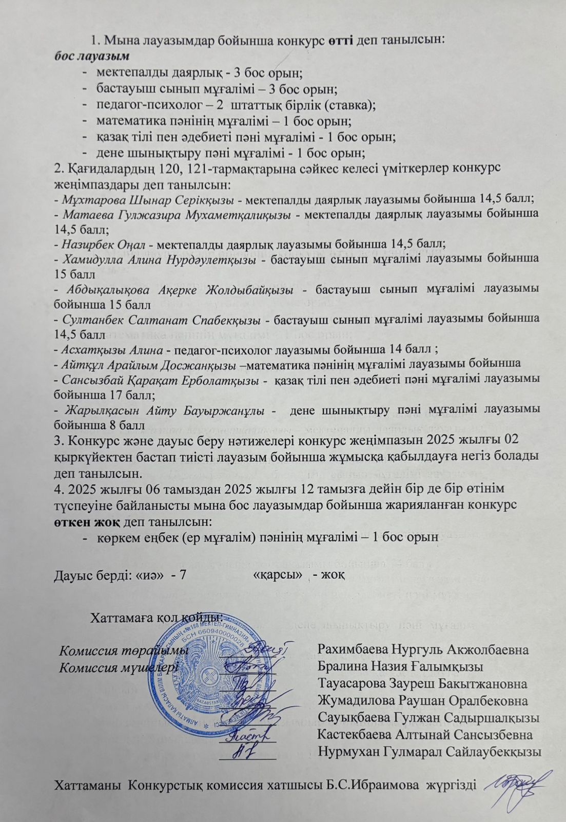 » » Бос лауазымдар бойынша жарияланған конкурсының қорытынды хаттамасы