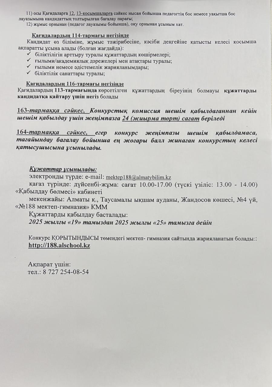 » » Бос лауазымға тағайындау конкурсы Хабарландыру