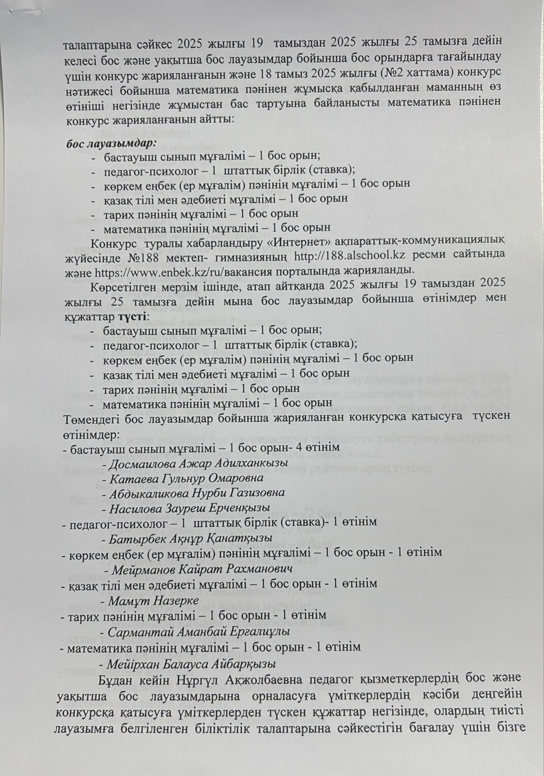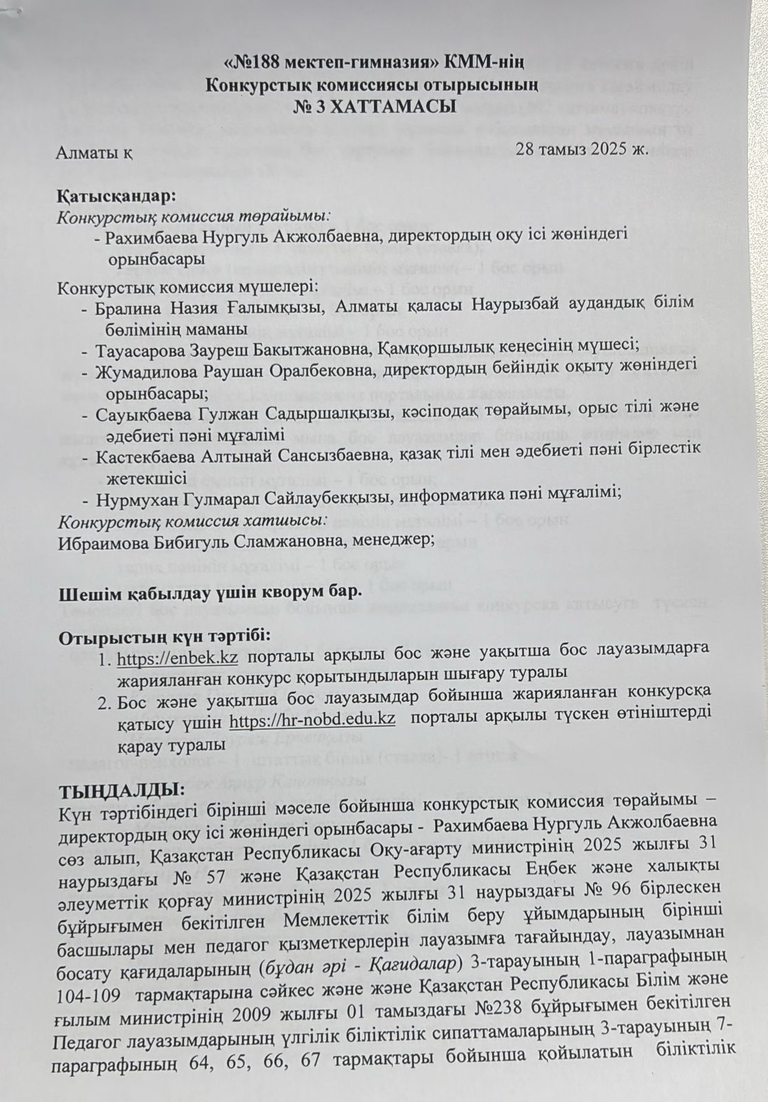 » » Бос лауазымдар бойынша жарияланған конкурсының қорытынды №3 хаттамасы