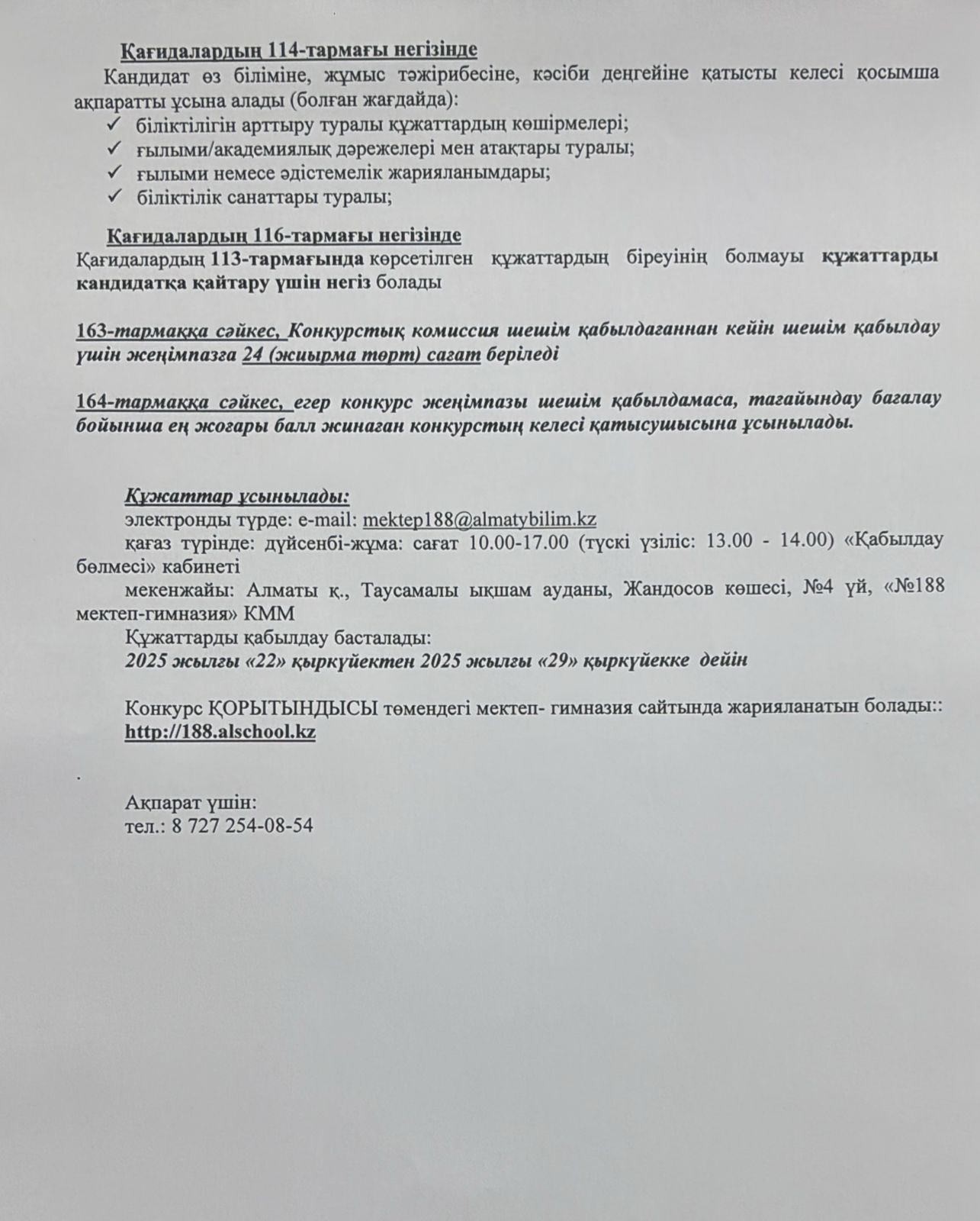 » » Бос лауазымға тағайындау конкурсы Хабарландыру