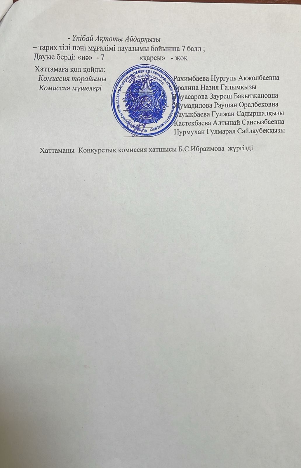 Конкурстық комиссия отырысының №8 хаттамасы