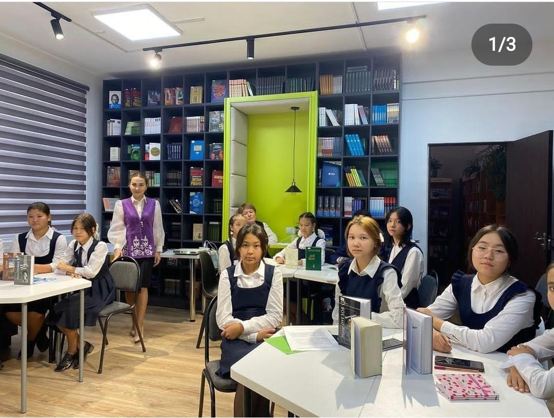 “Әдебиет әлемінің алыптары” тақырыбында 7-сынып оқушыларымен танымдық сабақ өтті.