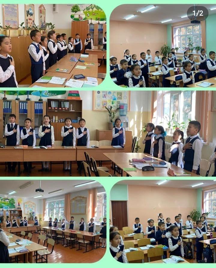 #188 мектеп-гимназияда Республика күніне орай 1-11 сынып білім алушылары жаппай әнұран орындады.@otdel_obrazovaniya_nauryzbay