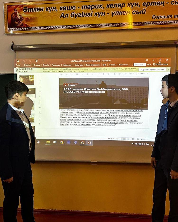 🖋”Сұлтан Бейбарыстың 800 жылдығы” атты тақырыбында 9”Е” сыныбында тәрбие сағаты өтті. Сабақта “Бейбарыс ізімен”атты халықаралық ғылыми экспедициясы жайлы мағлұмат алынды.
