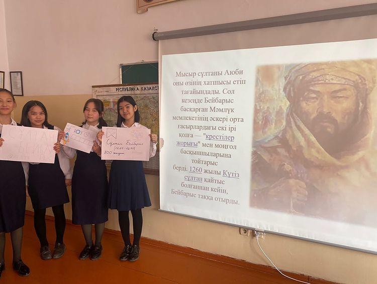 7 “Д” сыныбында қыпшақтан шыққан дара тұлға Сұлтан Бейбарыстың 800 жылдығына арналған сынып сағаты өтті.