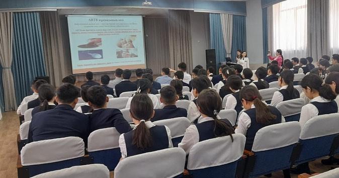 «ЖИТС алдын алу және оған қарсы күрес орталығы” маманы врач-эпидемиолог Садыкова Сандугаш Абдыкасымова “АИТВ жұқпасы және алдын-алу шаралары” тақырыбында сұрақ- жауап арқылы түсіндірме жұмыс өткізілді.