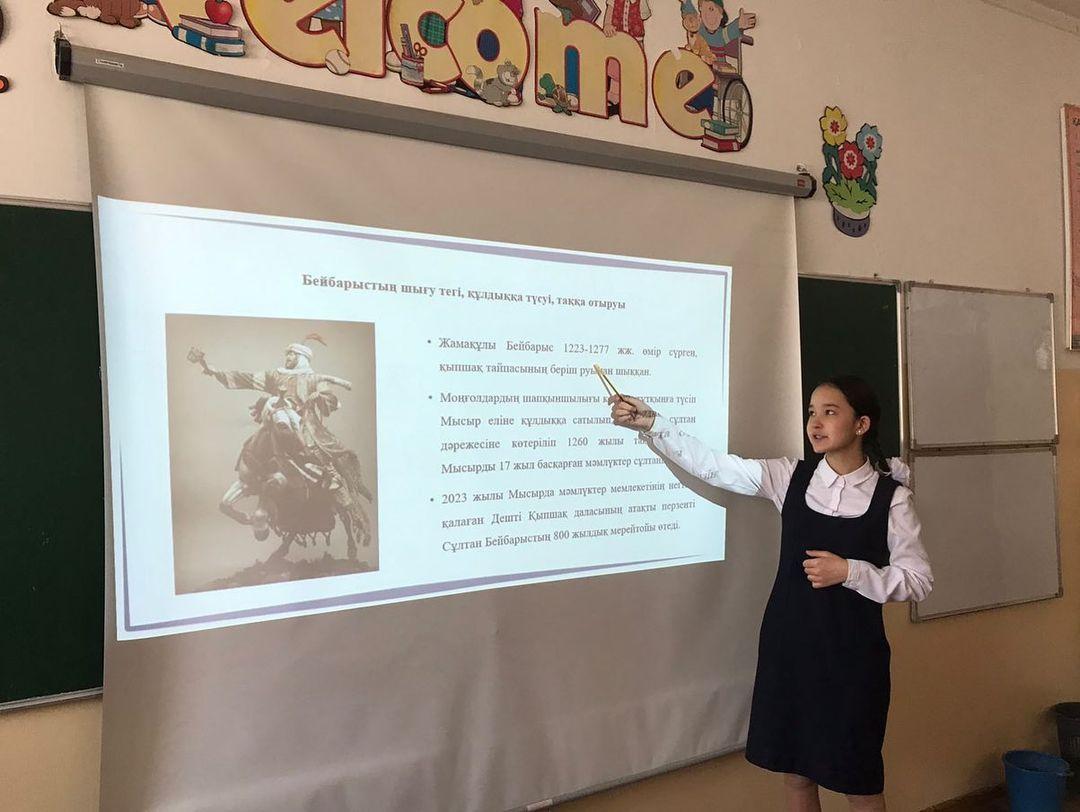 8 в сыныбында "Сұлтан Бейбарыс- 800 жыл" тақырыбында тұлғатану сынып сағаты өтті.