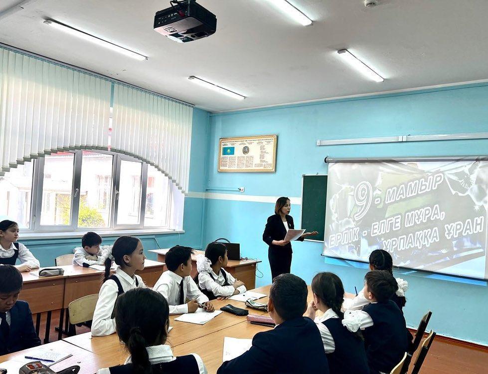 05.05.2023 күні Наурызбай ауданы, 188 мектеп-гимназиясында 7-сынып оқушыларымен бірге, Каналбекова Гүлнар Қасымбекқызы «Ешкімде, ешнәрседе ұмытылмайды» тақырыбында дөңгелек үстел өткізді. Мақсаты: Ұлы Жеңісті дәріптеу, өз Отанын, елін, туған жерін сүю, туған жеріне деген сүйіспеншілігін арттыру, Отанын, туған елін қорғай білуге тәрбиелеу. Ұлы Отан соғысында ерлік көрсеткен ата – бабаларымыздың ерлік істерін қастерлеп, рухын көтеру. Жас ұрпақты бейбітшілікті сақтауға және нығайтуға, батыл болуға тәрбиелеу, еркін сөйлеуге ерік беру.
