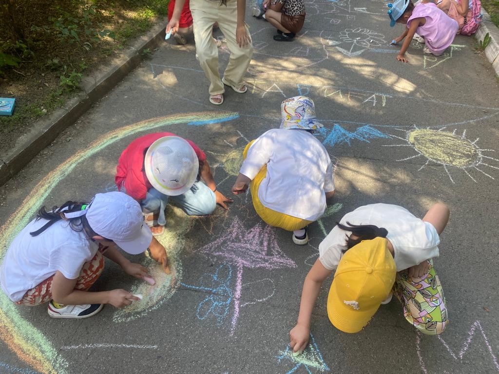 Жазғы демалыс лагеріне 1-4 сыныптардан 162-бала қамтылған.Лагердің ашылуына балалар көңілді әндерін айтып,өз өнерлері көрсетті. Балалар асфальтқа сурет салды.
