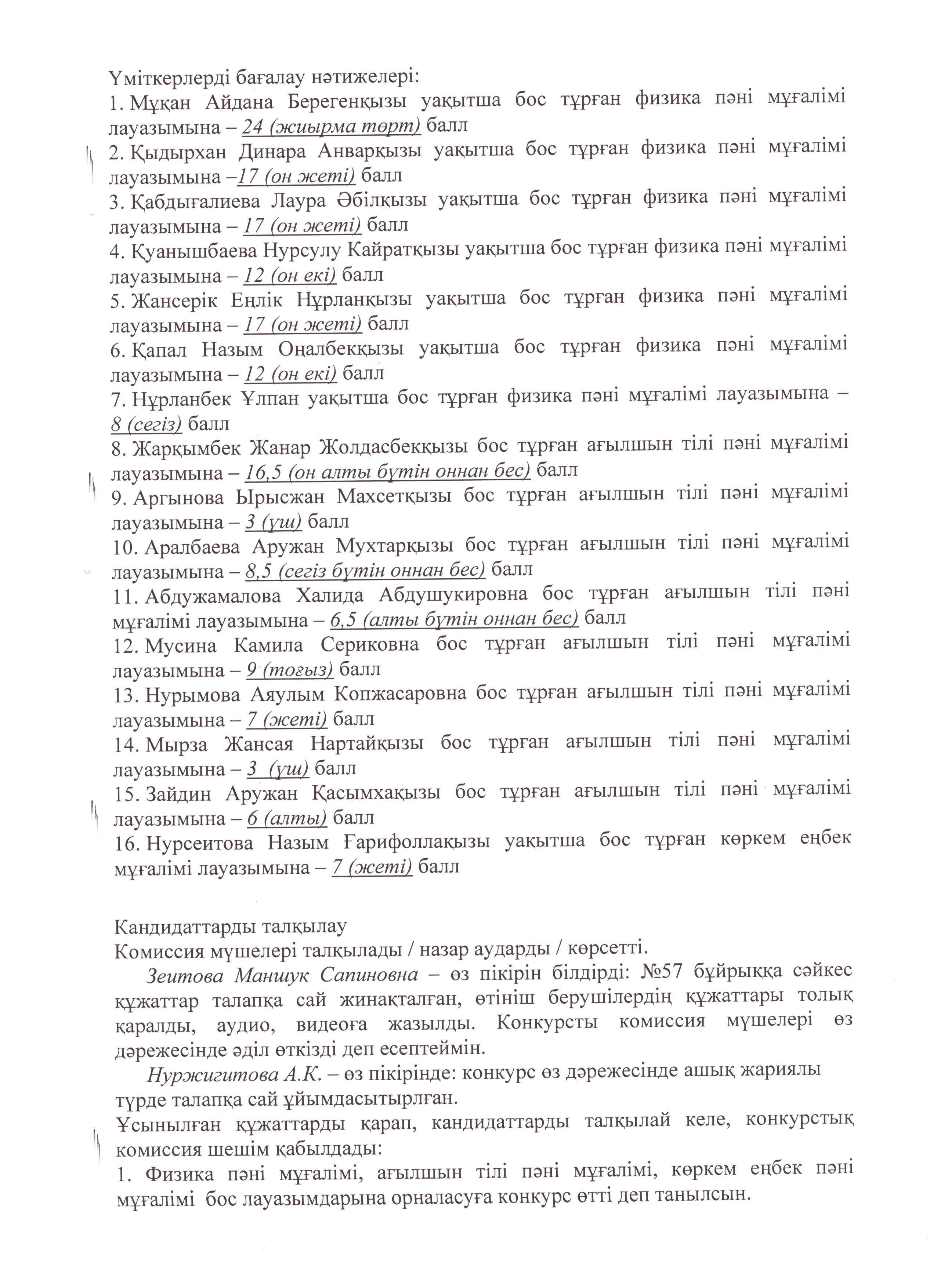 Конкурстық комиссия хаттамасы