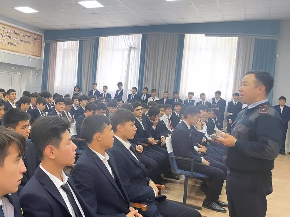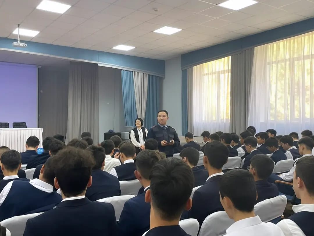 24.10.2023 жылы «Жасөспірімдер арасындағы құқықбұзушылықтың алдын алу» тақырыбында 9-10-11 сыныптың оқушыларымен Алматы қаласы, Алматы қаласы, Наурызбай ауданы ПБ ЖПҚБ ЮПБ УПИ полиция майоры Нугыманов Ермек Беккалиевич әңгіме жүргізді✅