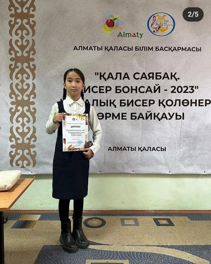 📍 «Қала саябақ. Бисер бонсай-2023» қалалық бисер қолөнері көрме байқауында 6 «Ә» сынып оқушысы Кенес Әмина ІІ орынға ие болды. 📍Халық аспаптар номинациясы бойынша "Almaty music Games" музыкалық аспапта орындаушылардың қола бағыты бойынша республикалық байқауда "Сарын" ансамбілі лауреат атанып, ІІІ орын 2023 жыл