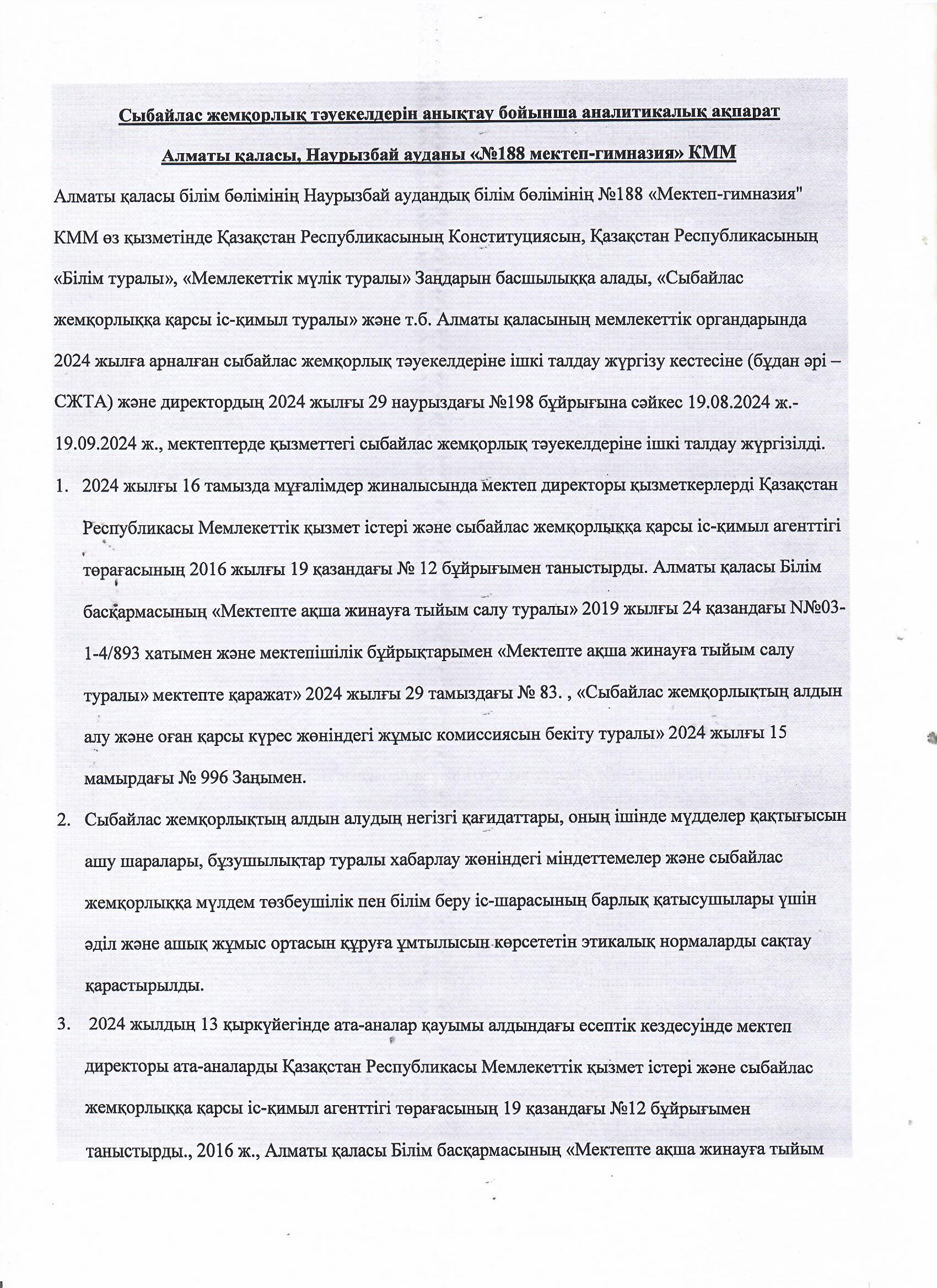 » » Сыбайлас жемқорлық тәуекелдерін анықтау бойынша аналитикалық ақпарат