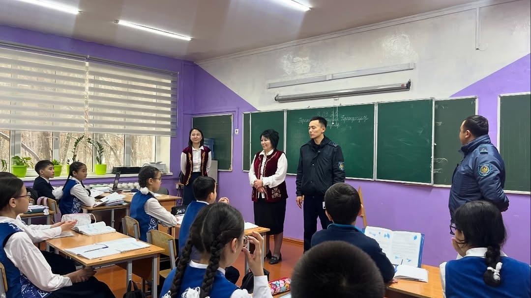 Алматы қаласы, Наурызбай ауданы 188 мектеп-гимназиясында 03.03.2025 күні Наурызбай ауданы полиция басқармасының аға лейтенанты Қыдырбек Ерболат Мерланұлы“Құқықбұзушылықтың алдын алу жолдары” тақырыбында профилактикалық жұмыс жүргізді.