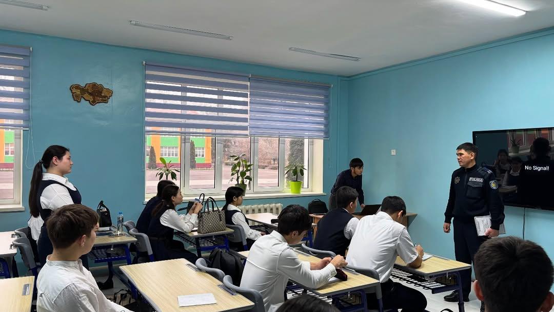 2025 жылдың 08 желтоқсанында Наурызбай ауданы Полиция басқармасының Жергілікті полиция қызметі басқармасының ювеналдық полиция бөлімшесінің учаскелік полиция инспекторы, полиция лейтенанты Аденов Айдос Мәлікұлының қатысуымен 5–11 сынып оқушыларына ар