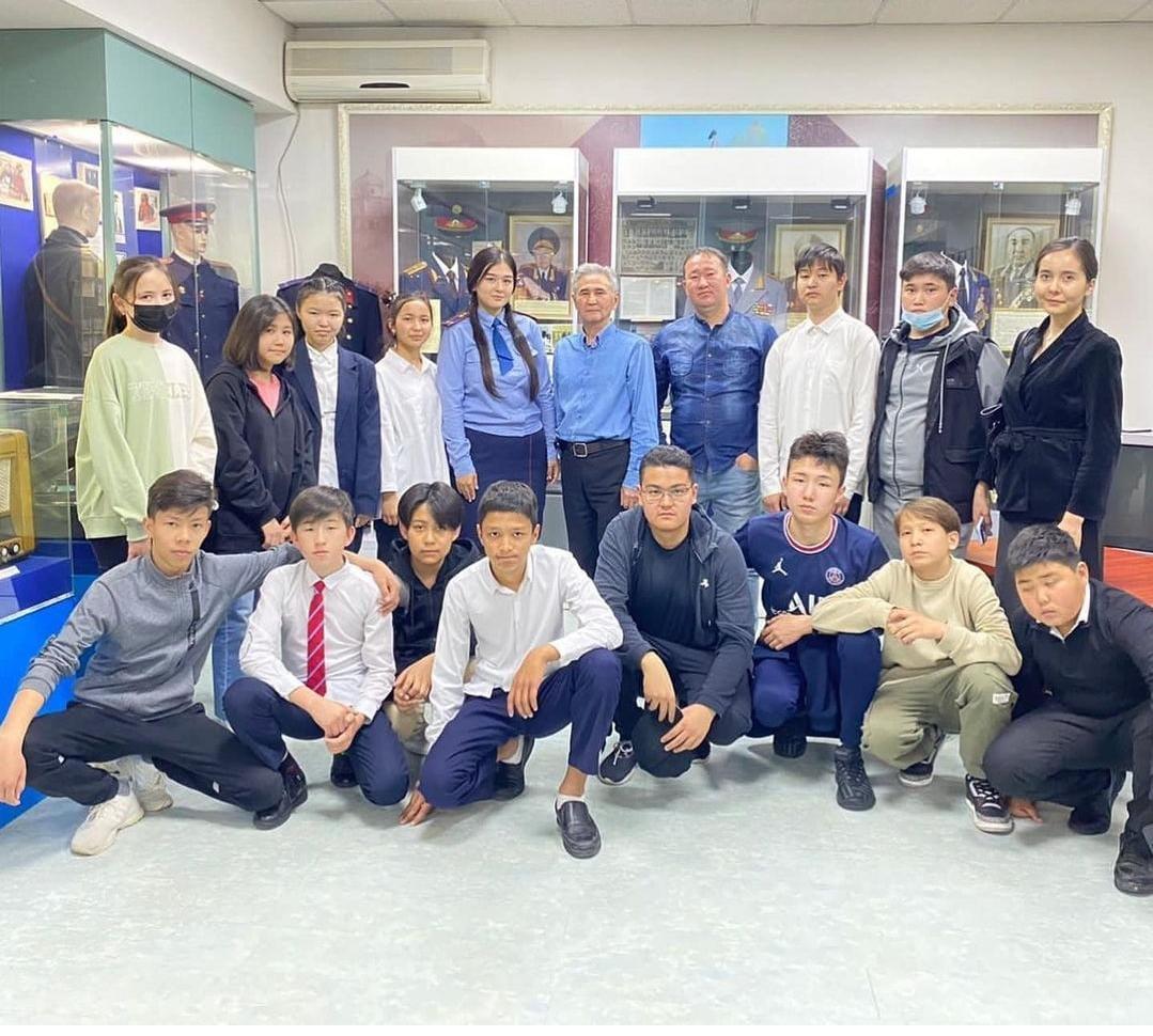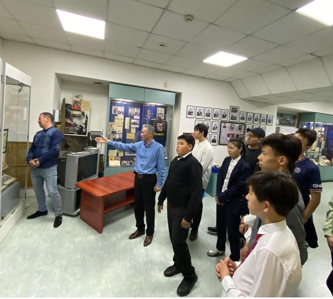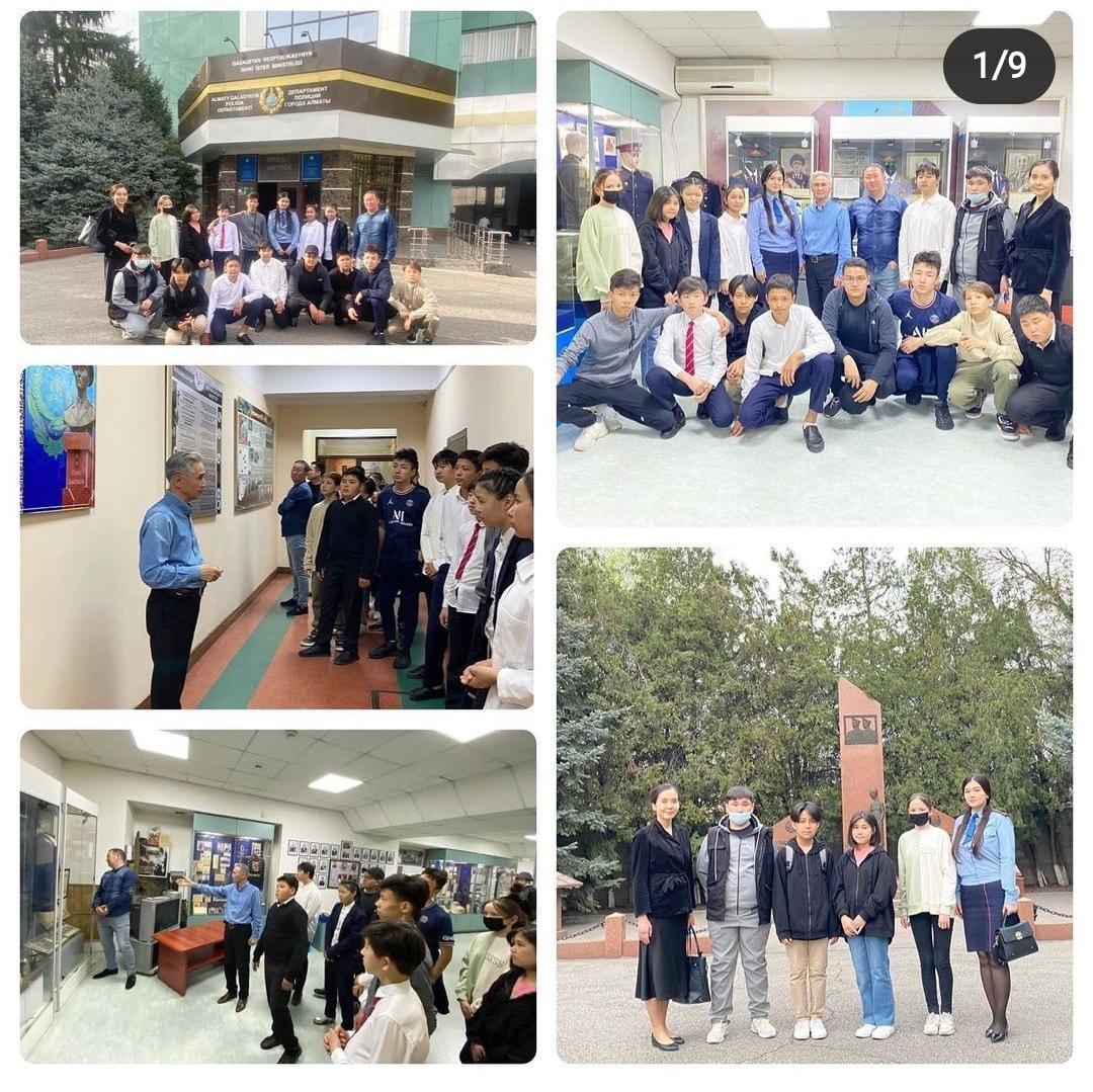 Алматы қаласы полиция департаментінің мұражай меңгерушісі Бегалы Шотыбаевич Баракат оқушыларды ішкі істер органдарының тарихымен таныстырды. Сондай-ақ, 2011 жылы 12 қарашада Тараз қаласында лаңкестерді құрықтау кезінде қызмет бабында қайтыс болған Ғазиз Байтасовтың ескерткіш суреті мен ерлігі жазылған тақтаны көрсетіп, оның батыл, қайсарлығы туралы әңгімелеп берді. Мұражай меңгерушісі Қазақстан Республикасы Ішкі істер министрлігін осыған дейін басқарған генералдардың фотосуреттерін көрсетіп, олар туралы қысқаша мәліметтерді мысалға келтірді. Оқушыларға Ұлы Отан соғысы кезіндегі байланыс құралдары мен қару жарақтары көрсетілді. Экскурсия барысында оқушылар спорттық, мәдени-қоғамдық іс-шараларда жеңіп алған ІІМ қызметкерлерінің марапаттарымен, грамоталарымен және дипломдарымен танысты.