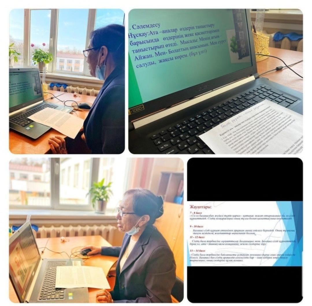 Жиналыс барысында ата –аналармен психологиялық тест жүргізілді. «Кім шапшаң?» ойыны арқылы «Сіз балаңызбен күніне қанша уақыт өткізесіз? Баланың мінезі мен танымдық сферасының қалыптасуына телебағдарламалар мен ғаламтордың әсері бар ма? Сіз баланы не үшін жазалайсыз және марапаттайсыз?» деген сауалдарға жауап алынды.