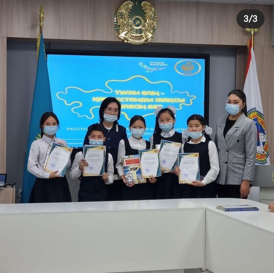 "Туған елің - Қазақстанды жақсы білесің бе?" тақырыбында республикалық балалар оқулары байқауының қалалық кезеңіне мектебіміздің 5 оқушыдан құралған "Қыран" командасы қатысып, 2- орынды иеленді.