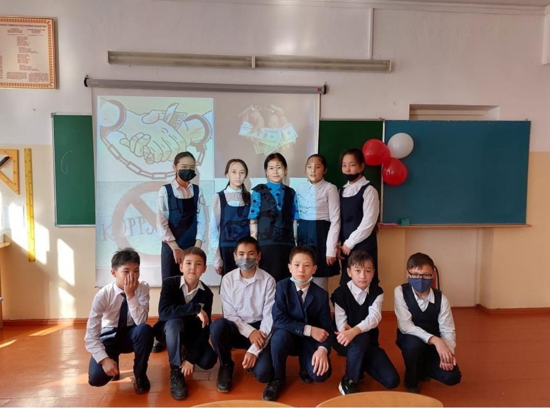 Бүгін 6 -сыныптар арасында математика пәні мұғалімі Аширханова Жібек Кунтуқызының ұйымдастыруымен "Сыбайлас жемқорлыққа жол жоқ!" атты интеллектуалды ойын өткізілді.