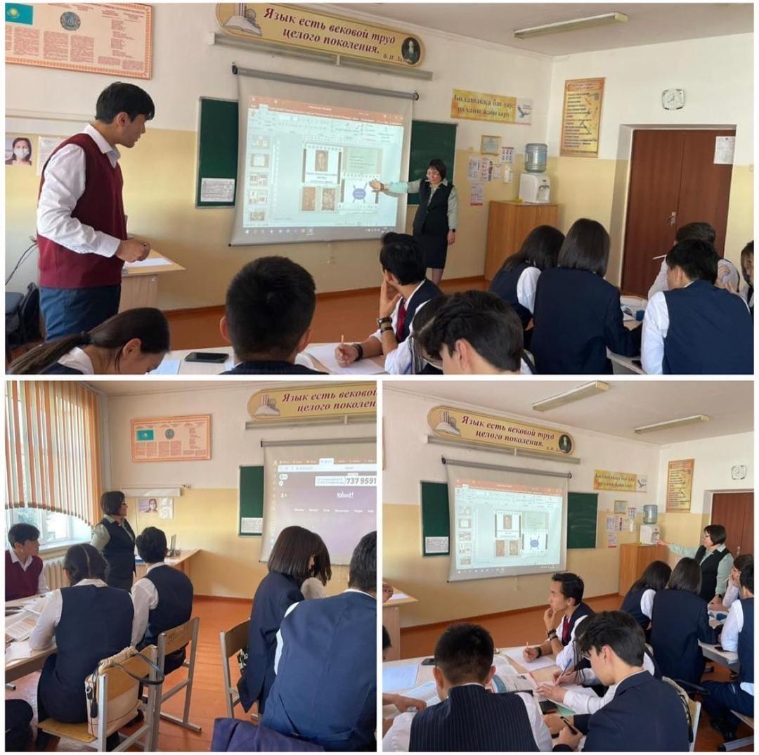 №188 мектеп-гимназиясында орыс тілі мен әдебиеті пәнінің мұғалімі Балабекова А.У “Казахские мотивы” тақырыбында 11 “Ә” сынып оқушыларымен ашық сабақ өткізді.