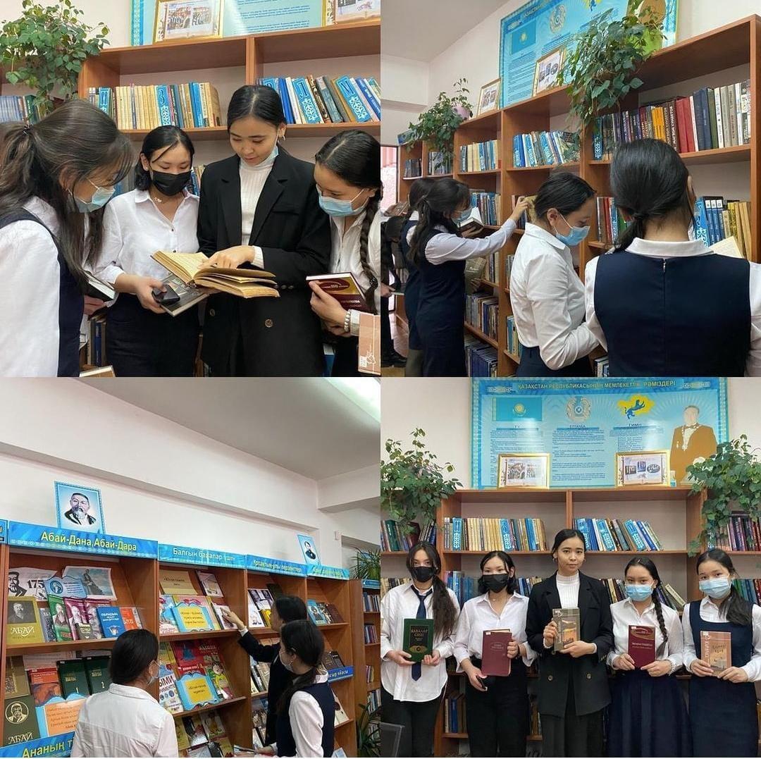 «Дарынды мектеп оқушысы оқуға міндетті 100 кітап» тақырыбында қазақ әдебиеті алтын қорындағы көркем әдеби және тарихи шығармалармен таныстырылым жұмыстары жүргізілді.