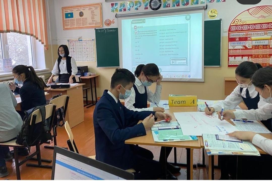 » »  "Филология" бірлестігінің апталығында ағылшын тілі пәнінің мұғалімі Карбозова Назгуль Нарытбековна,8 "Б" сыныбымен "Edutainment" тақырыбында ашық сабақ өткізді.