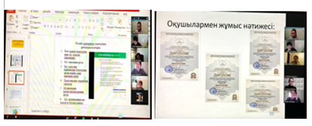 - Қашықтан оқыту шеңберінде білім беру платформаларын іс -тәжірибеде пайдаланудың тиімділігі тақырыбында информатика пәнінің мұғалімі Нұрмұхан Г., орыс тілі мен әдебиеті пәнінің мұғалімі Игисинова С.өз әс тәжірибелерімен бөлісті.