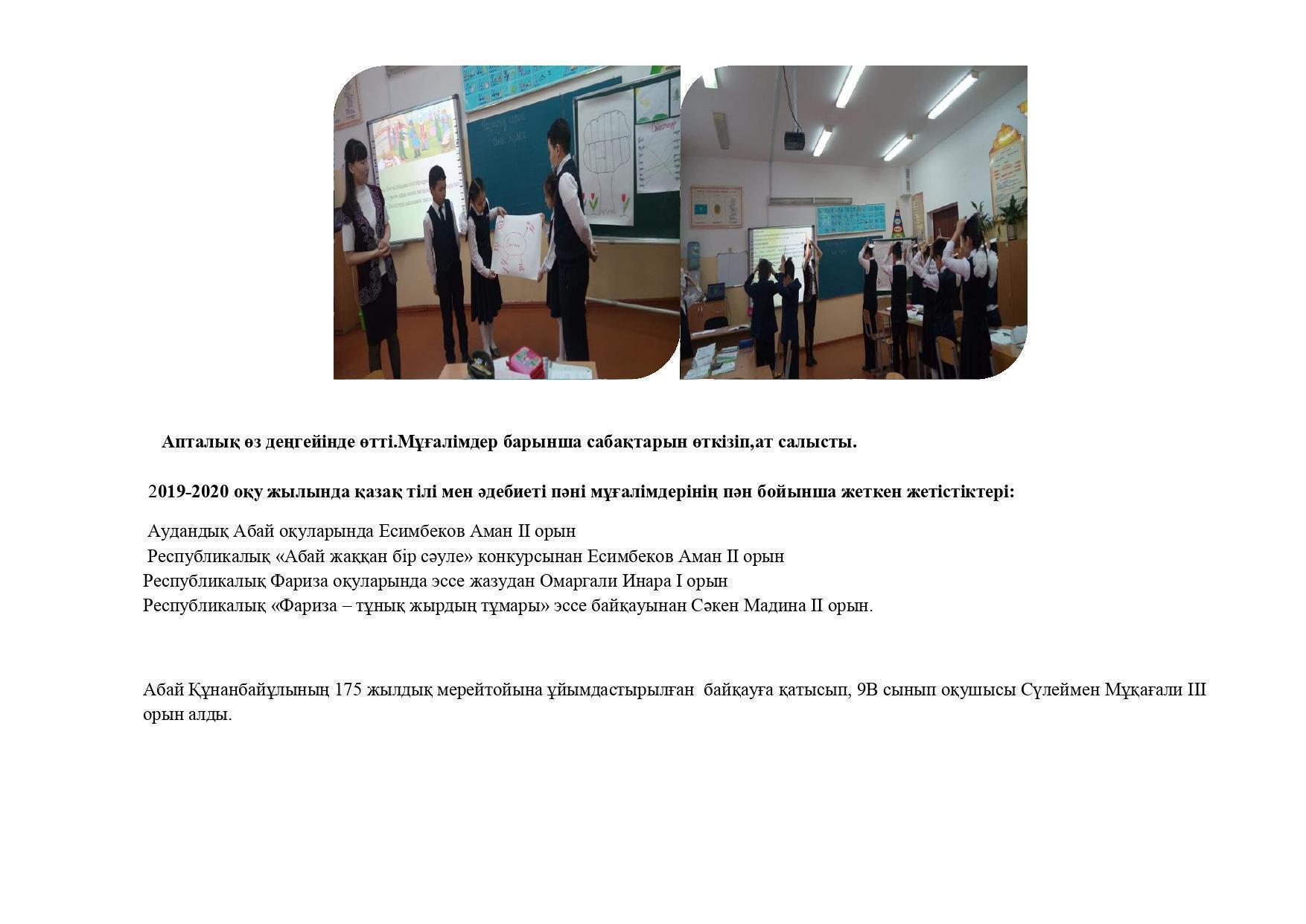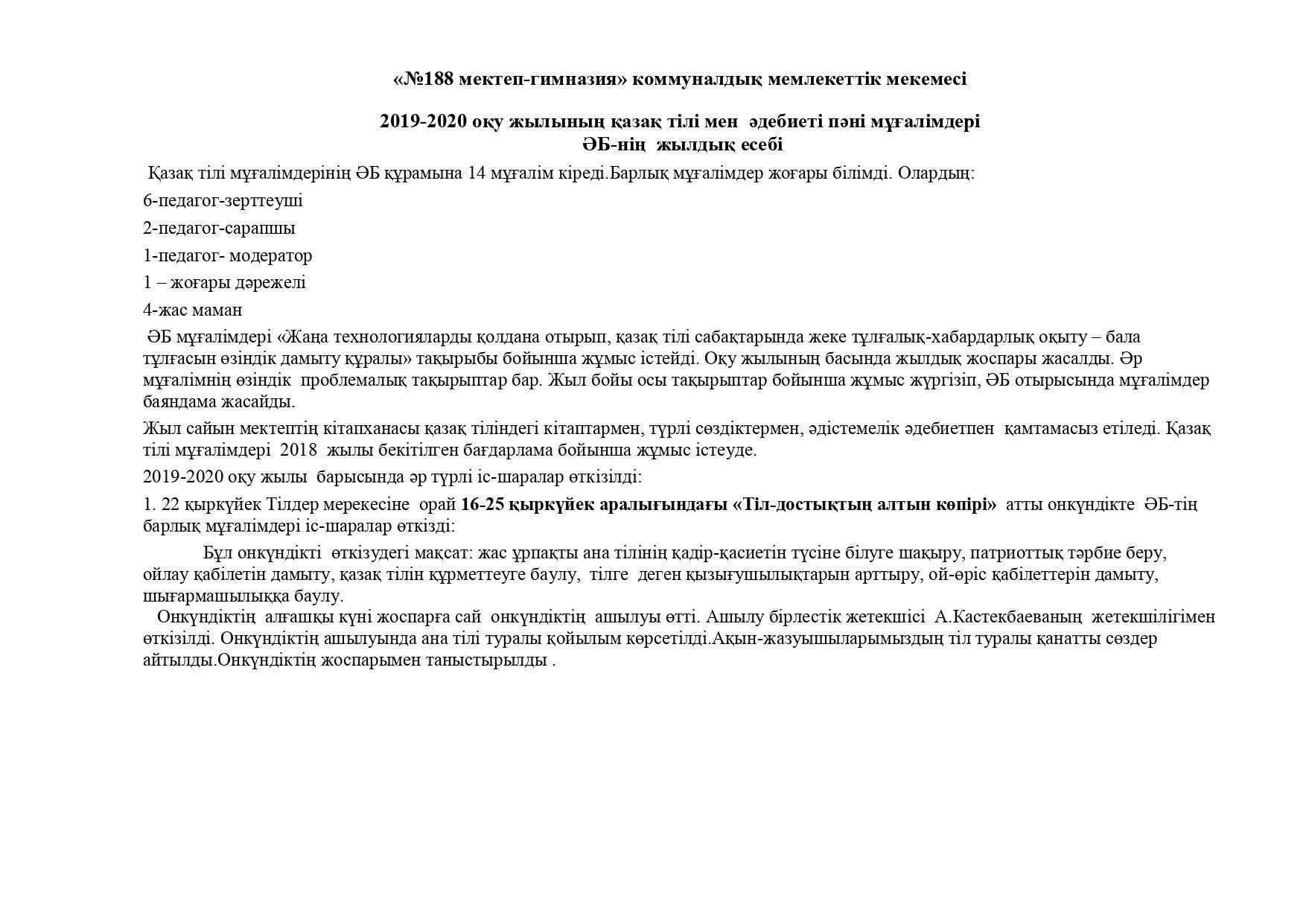 2019-2020 оқу жылының қазақ тілі мен әдебиеті пәні мұғалімдері ӘБ-нің жылдық есебі
