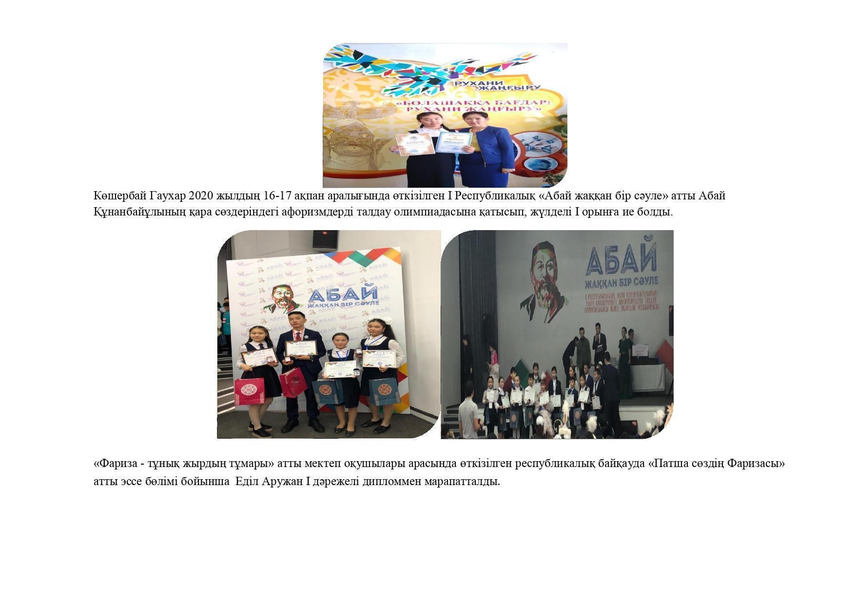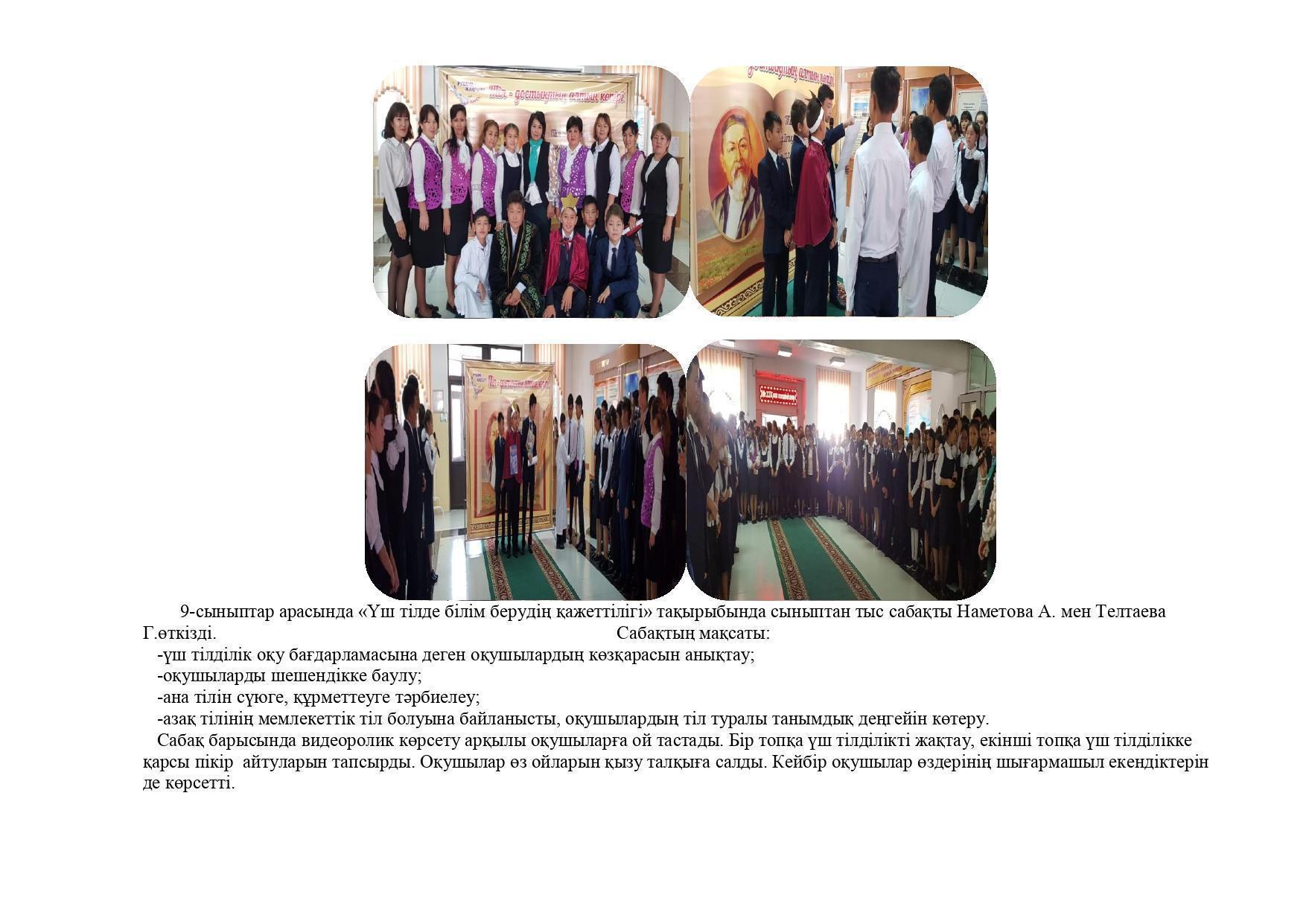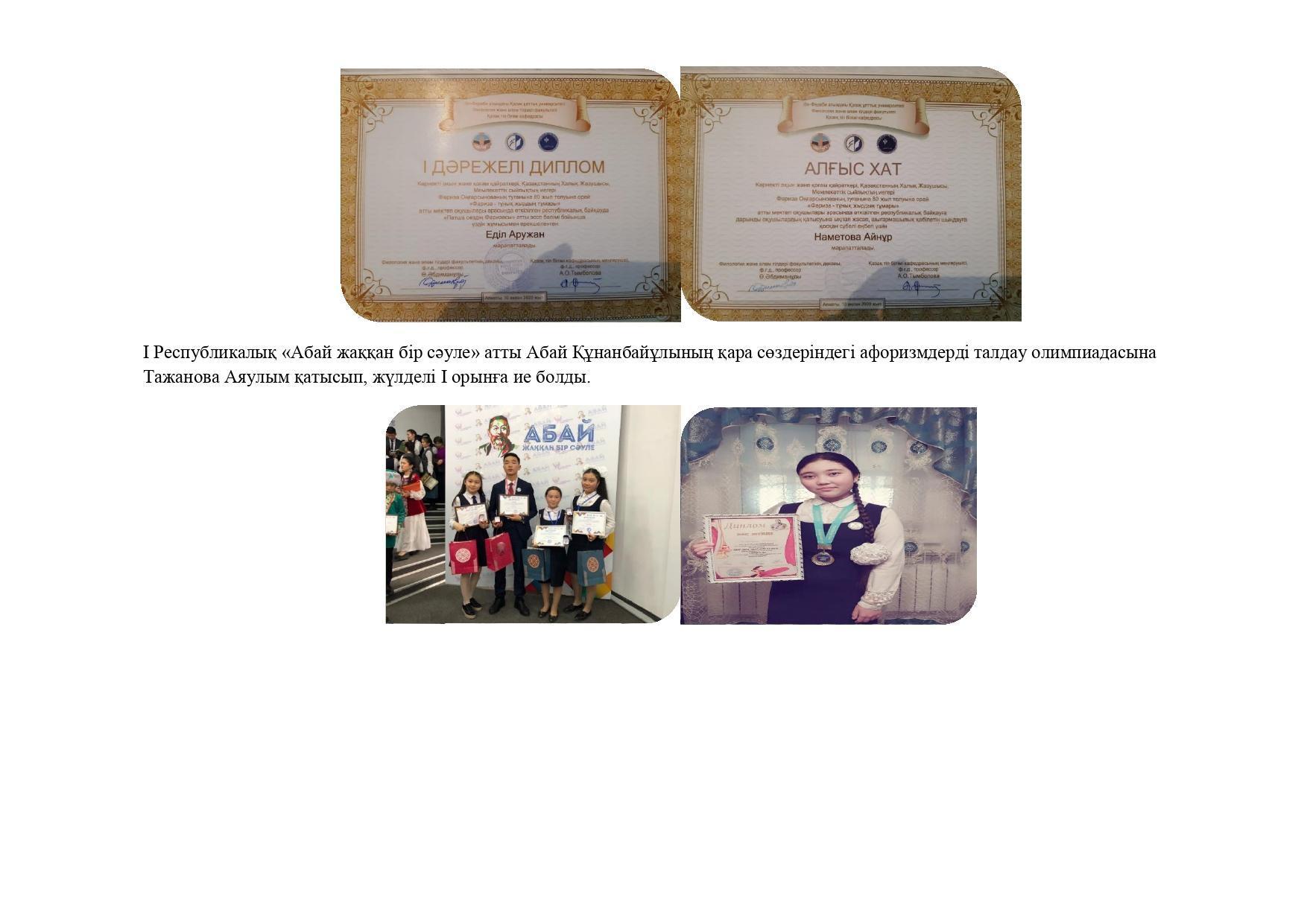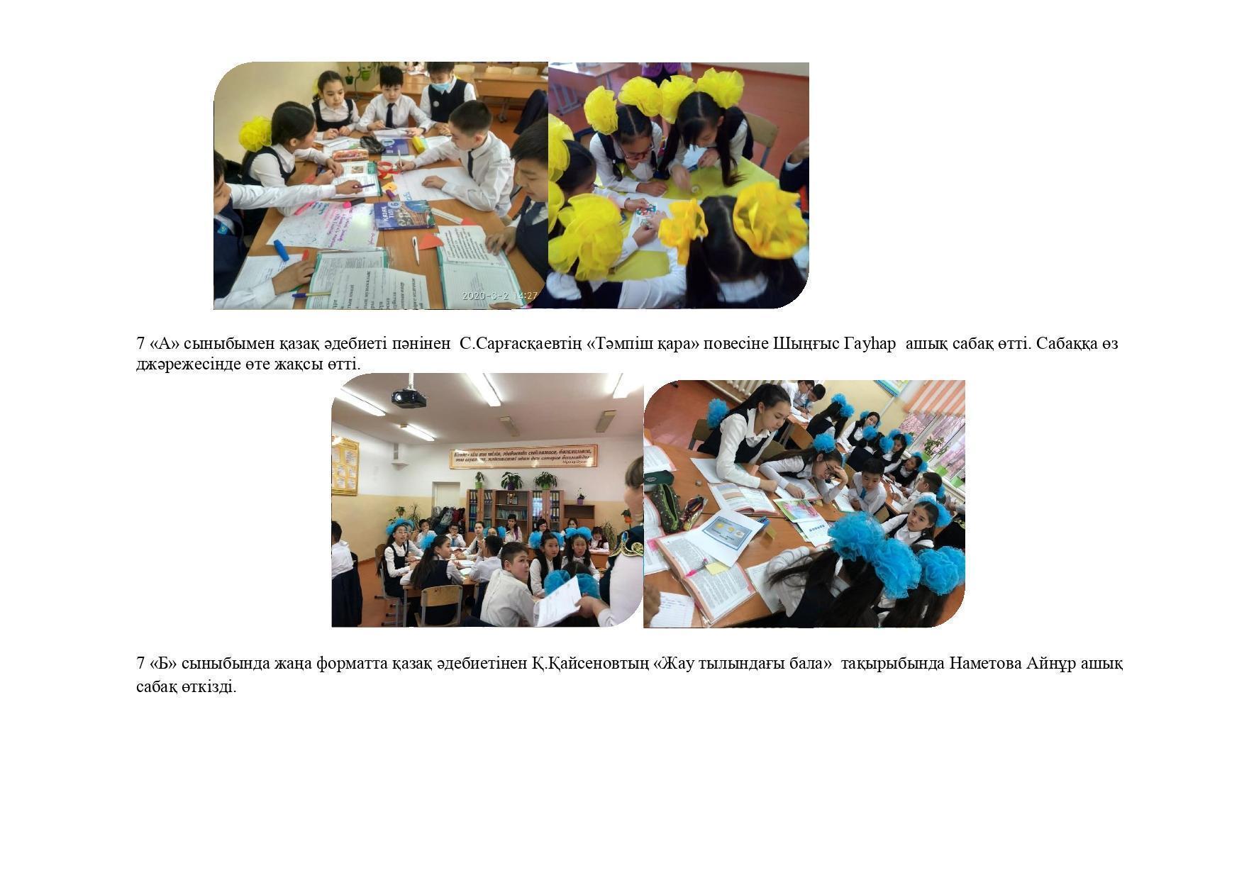 ӘБ мұғалімдері «Жаңа технологияларды қолдана отырып, қазақ тілі сабақтарында жеке тұлғалық-хабардарлық оқыту – бала тұлғасын өзіндік дамыту құралы» тақырыбы бойынша жұмыс істейді. Оқу жылының басында жылдық жоспары жасалды. Әр мұғалімнің өзіндік проблемалық тақырыптар бар. Жыл бойы осы тақырыптар бойынша жұмыс жүргізіп, ӘБ отырысында мұғалімдер баяндама жасайды.