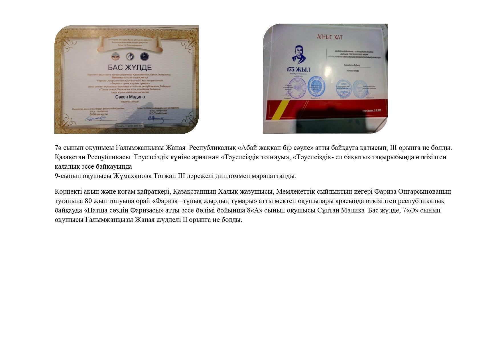 2019-2020 оқу жылының қазақ тілі мен әдебиеті пәні мұғалімдері