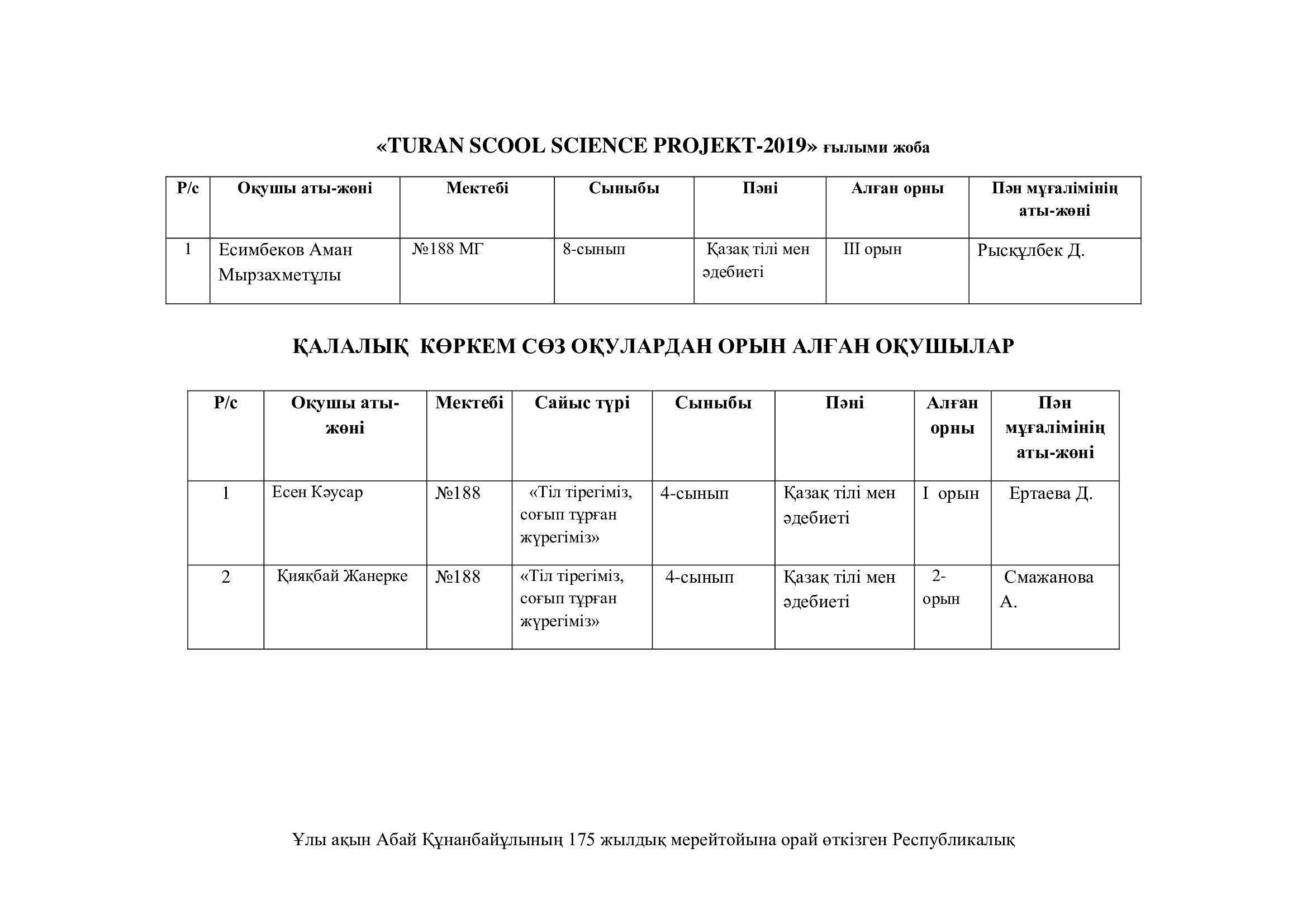 » » №188 мектеп-гимназияның 2019-2020 оқу жылында атқарылған жұмыстарына талдау