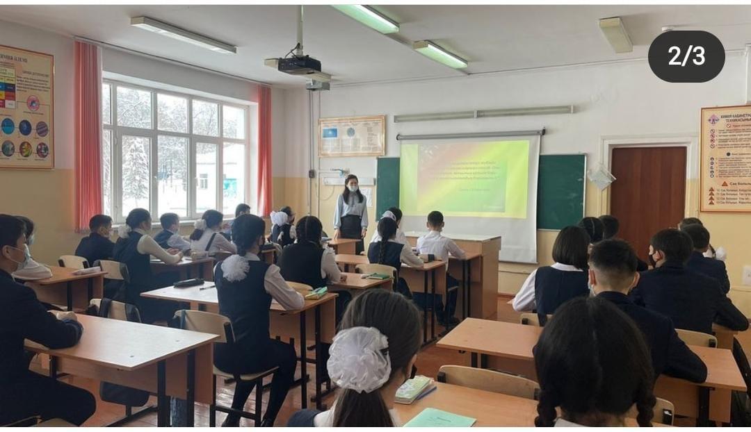 № 188 мектеп-гимназиясында 15.02.2022ж. 7 “Д” сыныбында “ Жамбыл Жабаев - жүз жасаған бәйтерек” атты тақырыбында сынып сағаты өтілді. Сабақтың мақсаты– Жамбыл атамыздың өлеңдері арқылы оқушылардың адамгершілік қасиеттерін қалыптастырып,қазақ тіліне деген,өз еліне деген сүйіспеншіліктерін арттыру.Патриоттыққа тәрбиелеу.