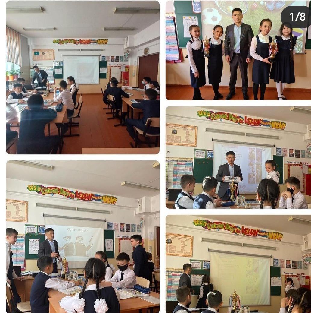 "Жас келсе,іске" апталығы аясында ағылшын тілі пәні мұғалімі Дадабаев Досымбек Исаұлы 5 "Ә "сыныбына әртүрлі тиімді әдіс-тәсілдерді пайдалана отырып,"Glasgow school of sport" тақырыбында ашық сабақ өткізді.