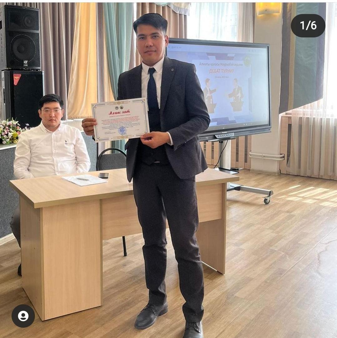 “Тестілеу білімнің негізгі көрсеткіші ме?”, “Міндетті әлеуметтік медициналық сақтандыру халыққа қаншалықты тиімді?” тақырыптары аясында өткен дебат турниріне қатысып, азаматтық белсенділік танытып, дебатта 2-орынға ие болды.