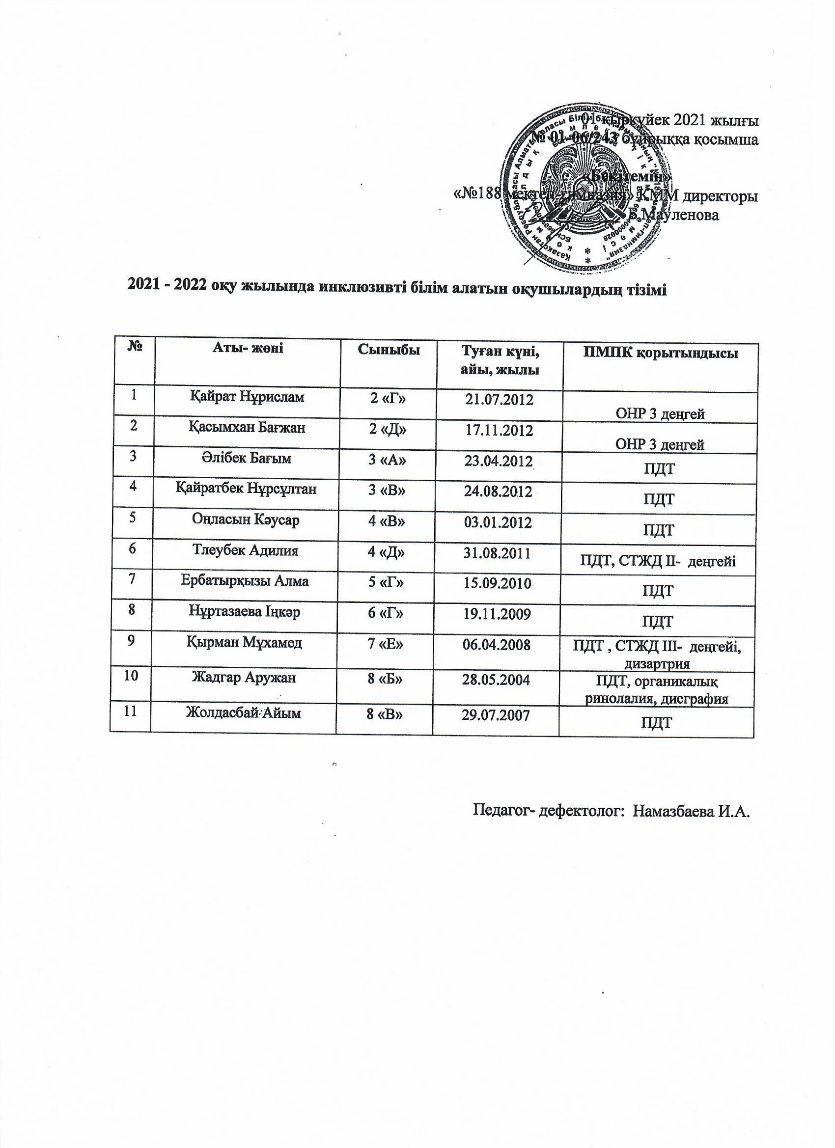 » » » 2021 жылғы инклюзивті білім беруді ұйымдастыру туралы бұйрық