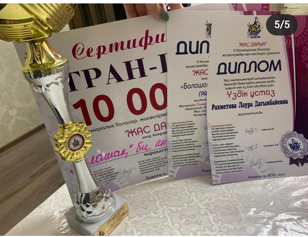 Халықаралық балалар мен жасөспірімдер арасындағы “Жас дарын” өнер байқауында #188 мектеп-гимназиясының “Болашақ” би тобы бас жүлдеге ие болды. Сонымен қатар кәсіби іскерлігі мен шеберлігі үшін жетекшісі Рахметова Лаура “Үздік ұстаз” номинациясымен Рахметова Лаура Дагынбайевна марапатталды.