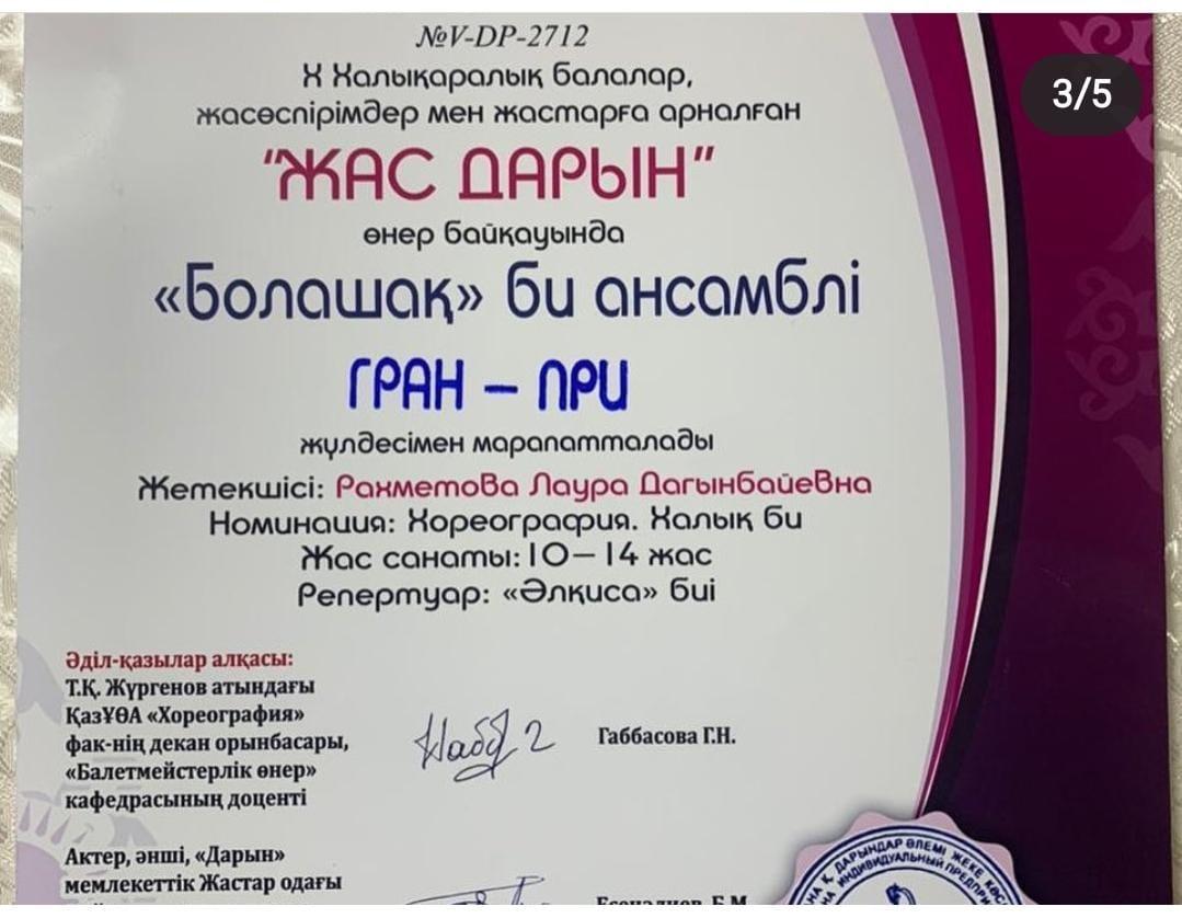 Халықаралық балалар мен жасөспірімдер арасындағы “Жас дарын” өнер байқауында #188 мектеп-гимназиясының “Болашақ” би тобы бас жүлдеге ие болды.