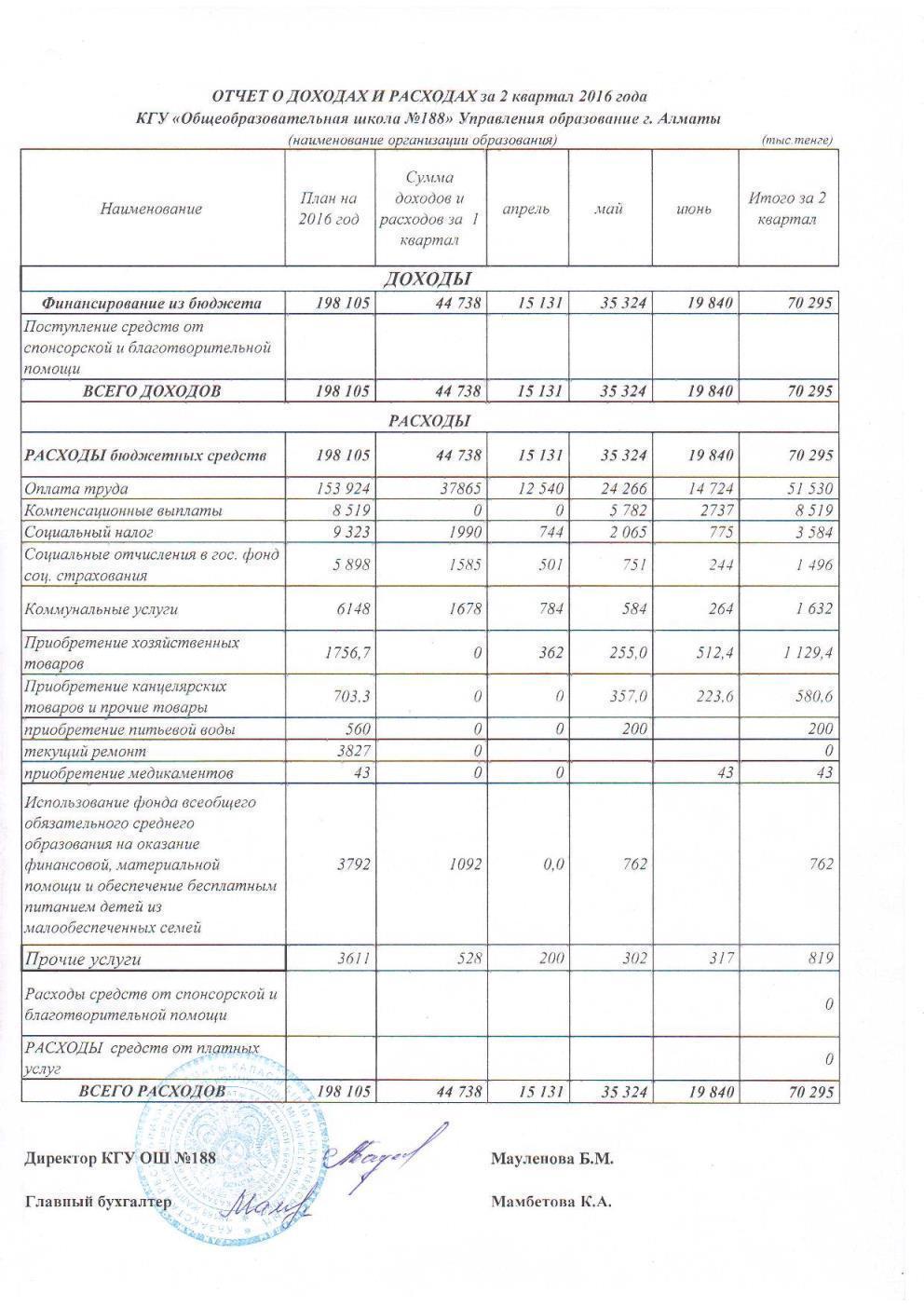 » » » Отчет о доходах и расходах за 2 Квартал 2016 и пояснительная записка