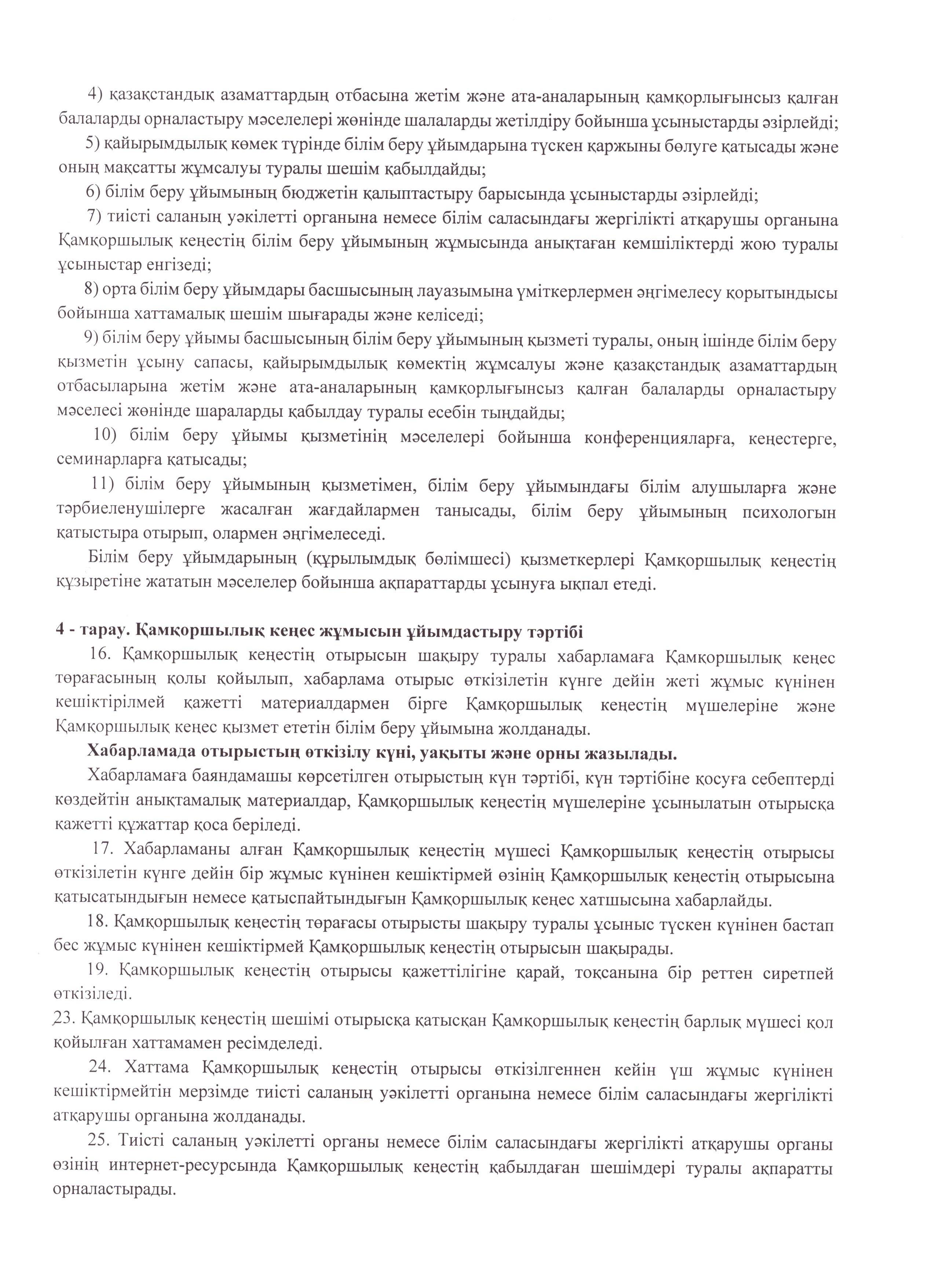 » » » Білім беру ұйымдарында қамқоршылық кеңестің жұмысын ұйымдастыру және оны сайлау тәртібінің үлгілік қағидалары