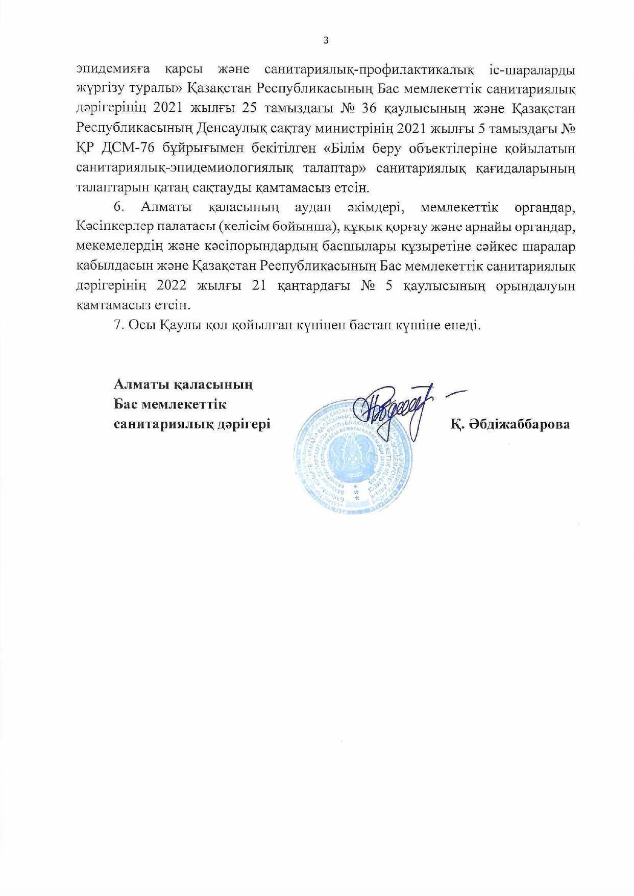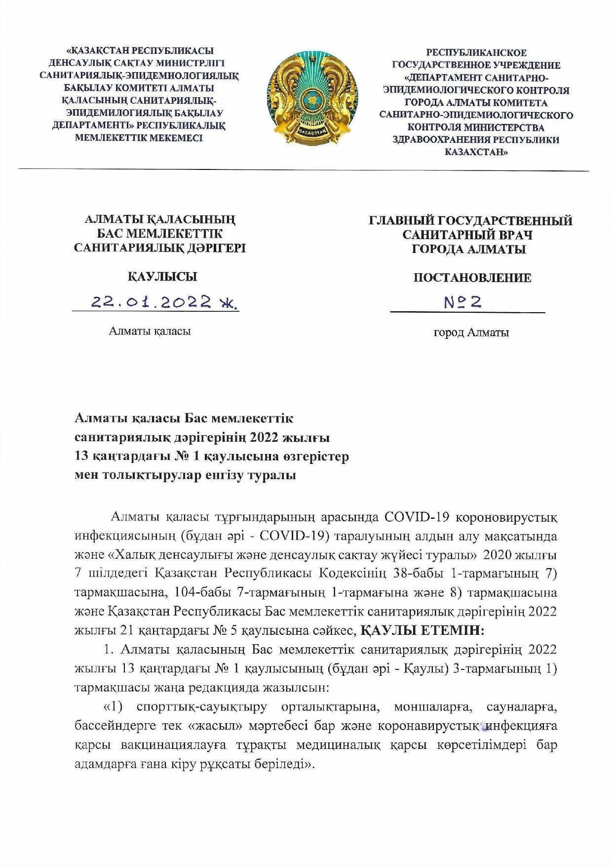 » » Алматы қаласының бас мемлекеттік санитарлық дәрігері Қаулысы