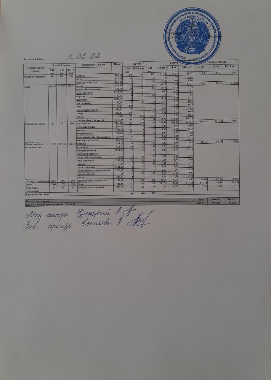 Күнделікті меню 03.02.2022