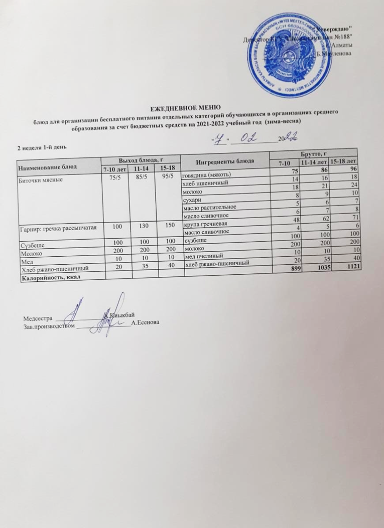 Күнделікті меню 07.02.2022