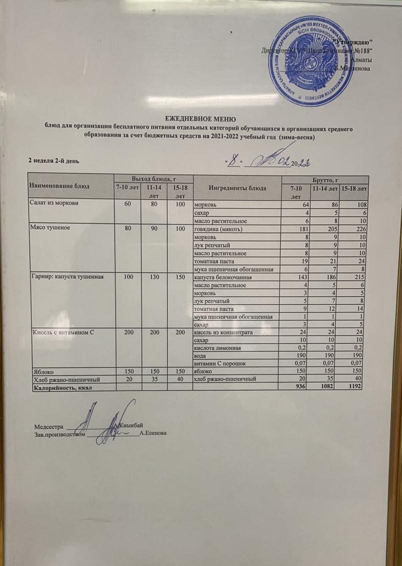 Күнделікті меню 08.02.2022