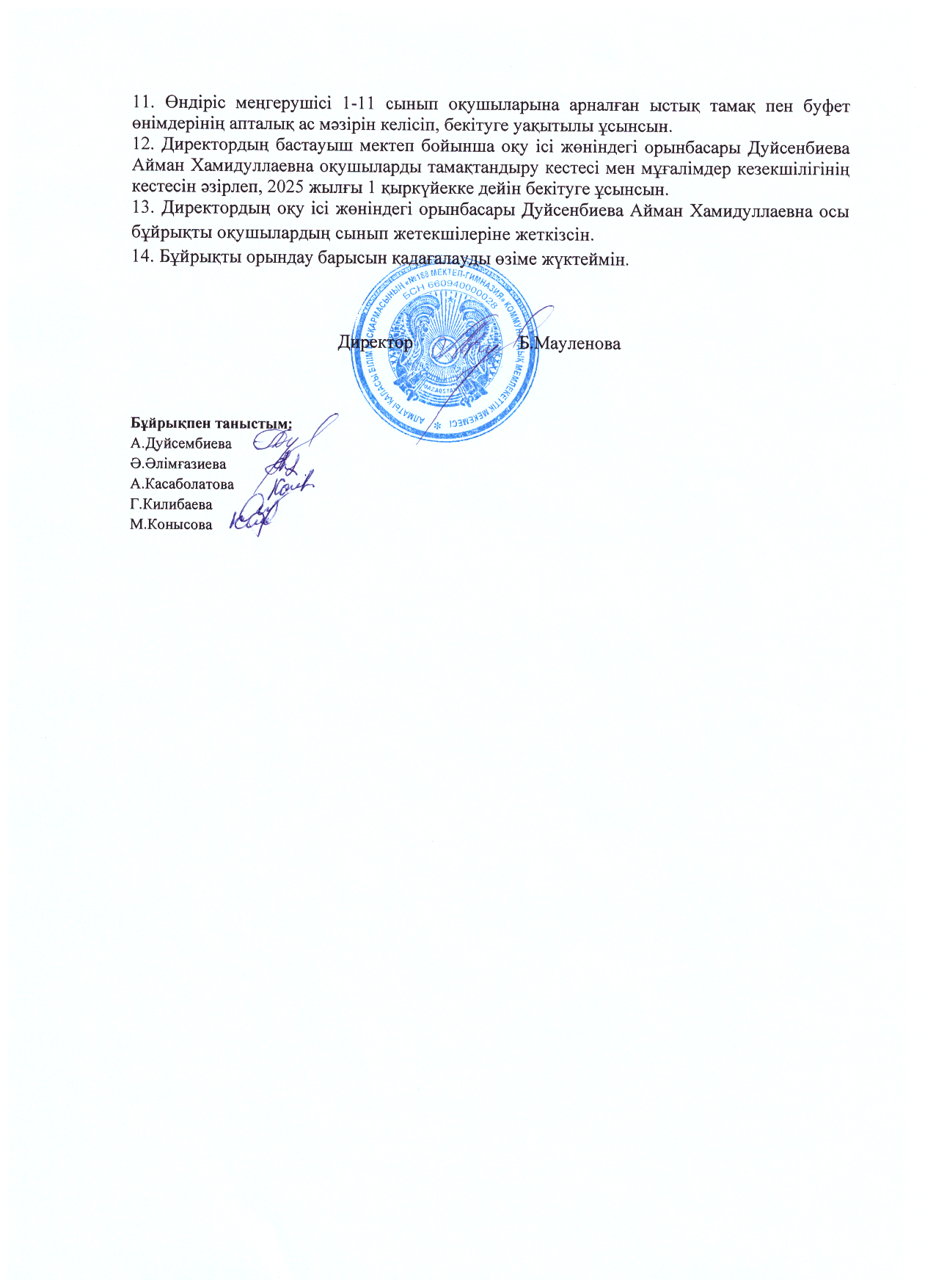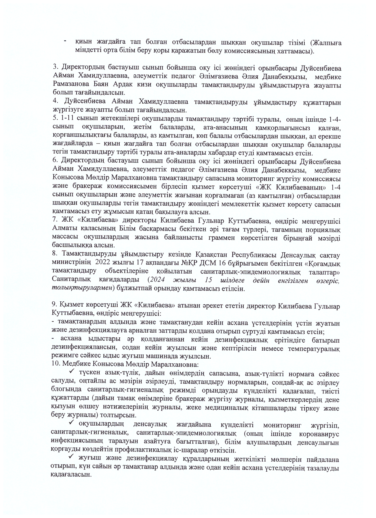2025-2026 оқу жылына тамақтандыруды ұйымдастыру туралы
