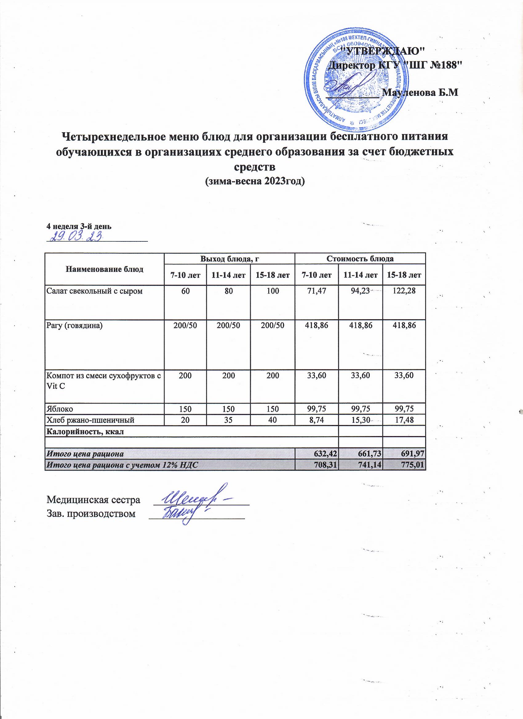 Күнделікті меню 29.03.2023
