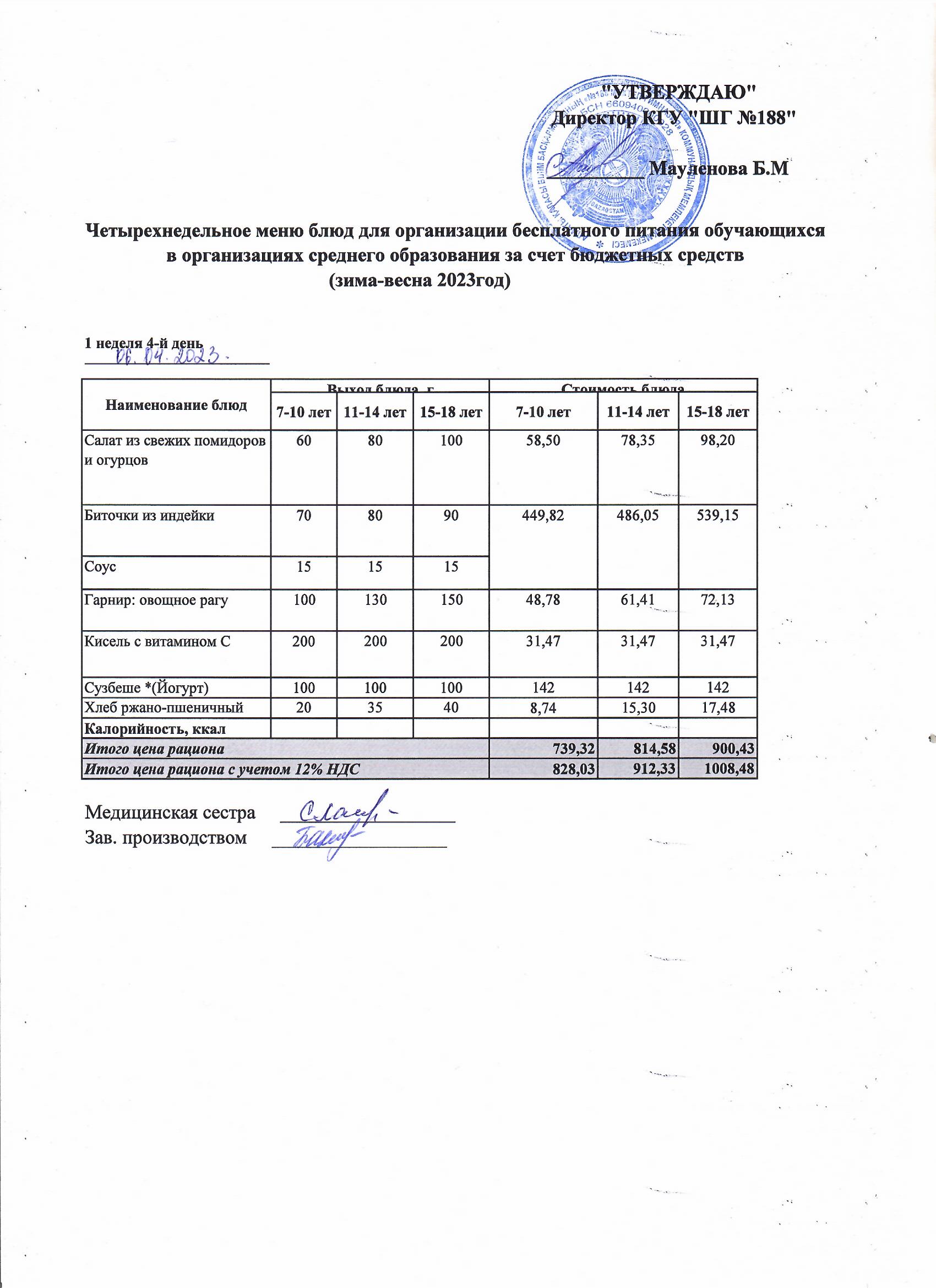Күнделікті меню 06.04.2023