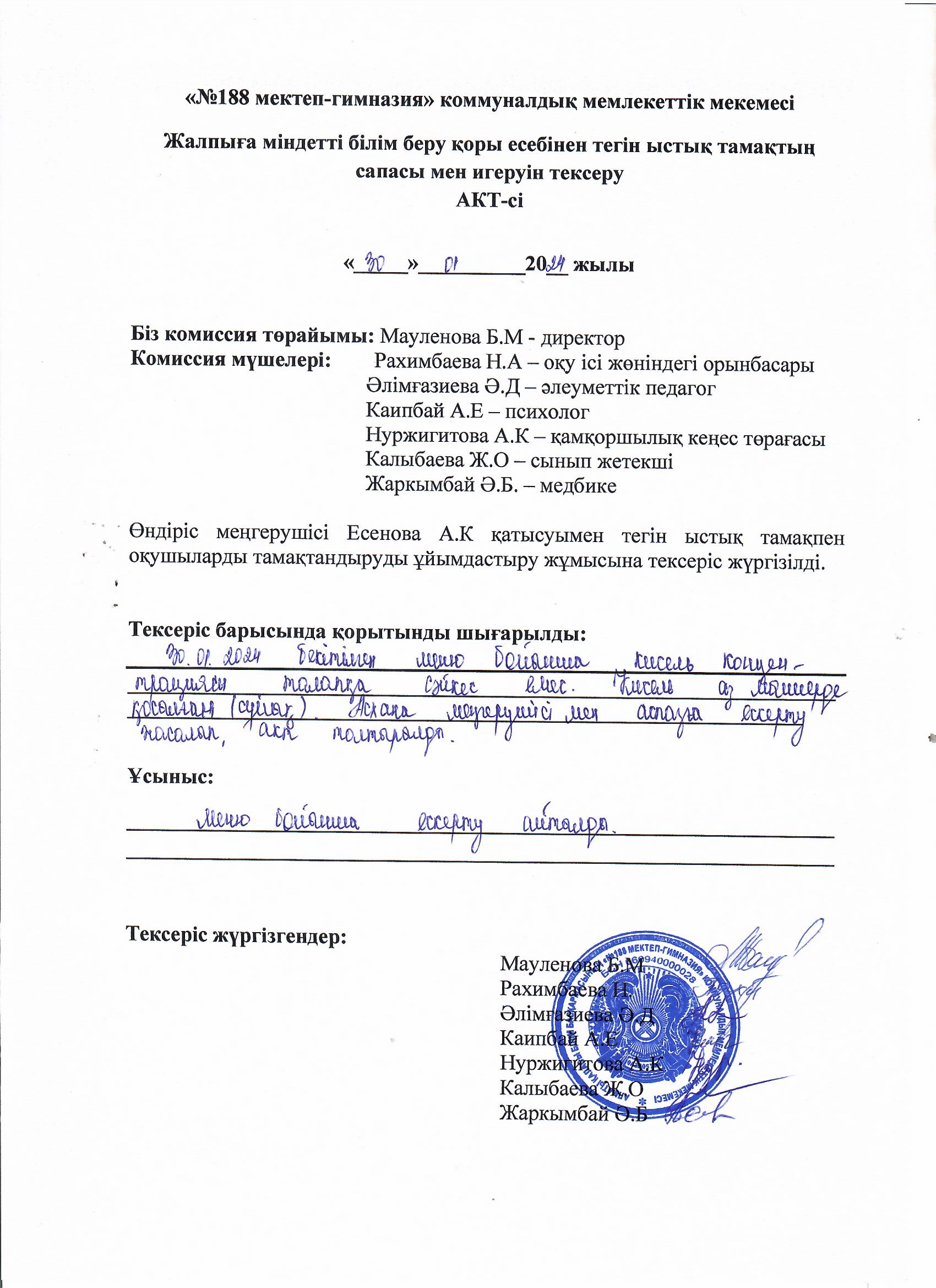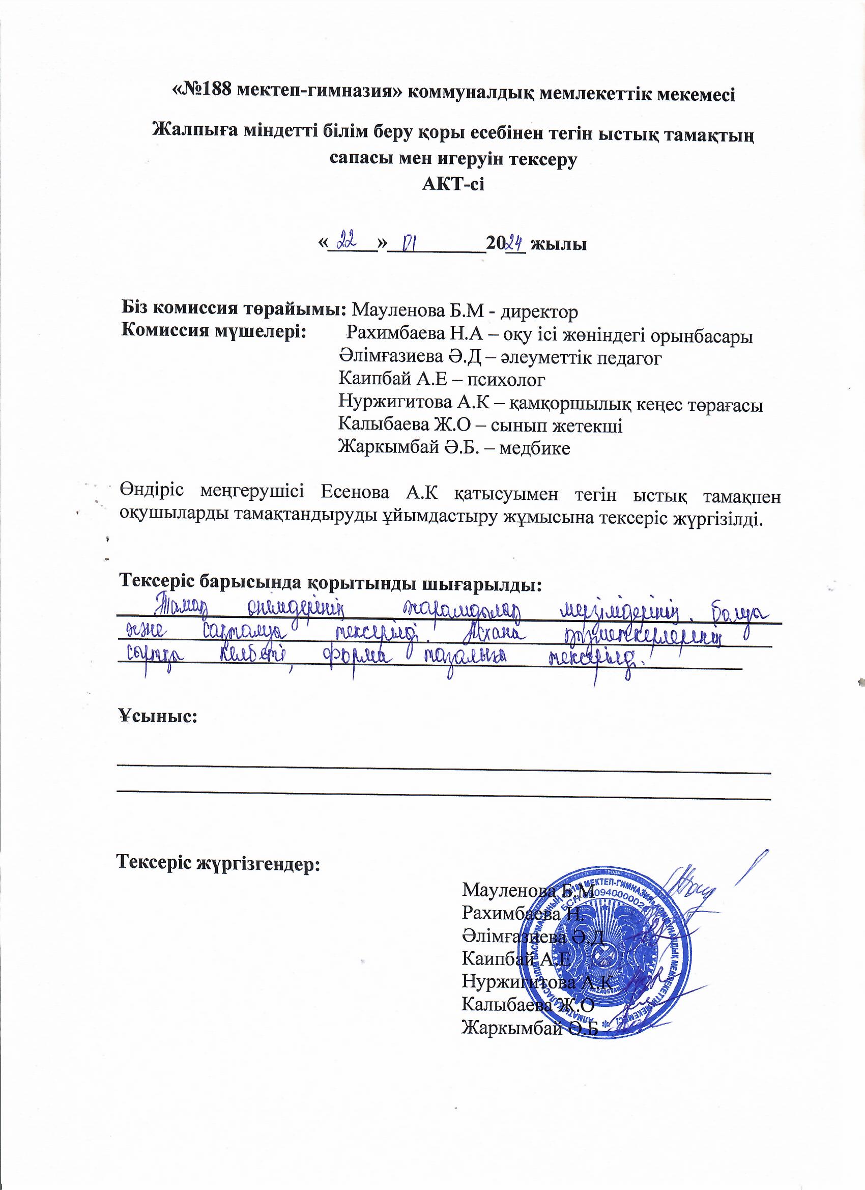 » » » Тамақтың сапасы мен игеруін тексеру АКТ-сі қаңтар айы 2024 жыл